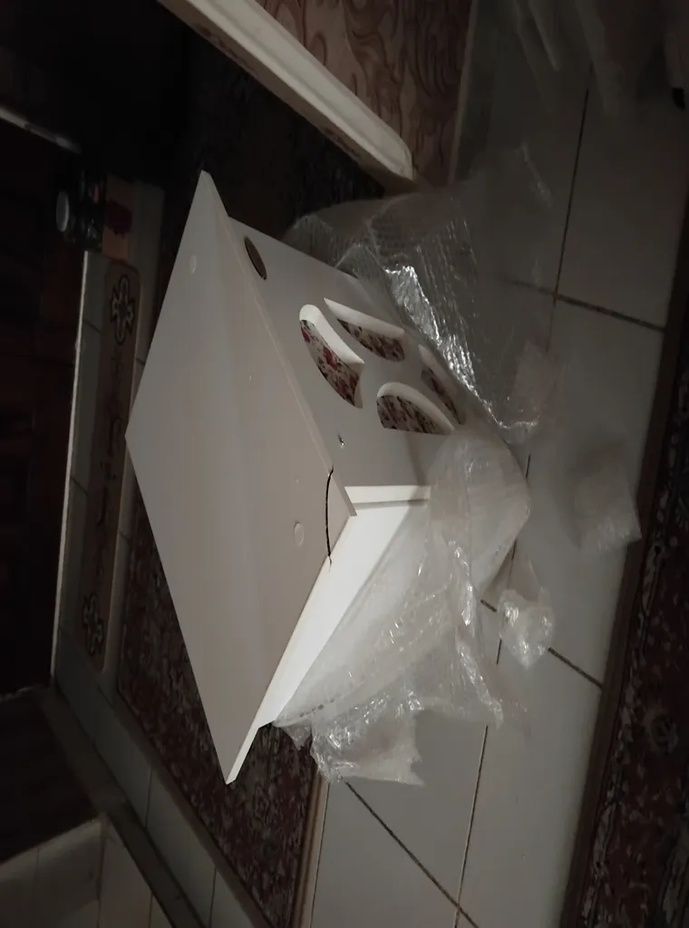 خریدار بدون نام : طبق عکس باید رنگ سفید فقط پایه قهوه ای باشه ولی برای ما پایه سفید از جنس پلاستیک فشرده بود و داخل دو کشوی اول قهوه ای بود .. لبه های کار هم کمی زدگی داشت