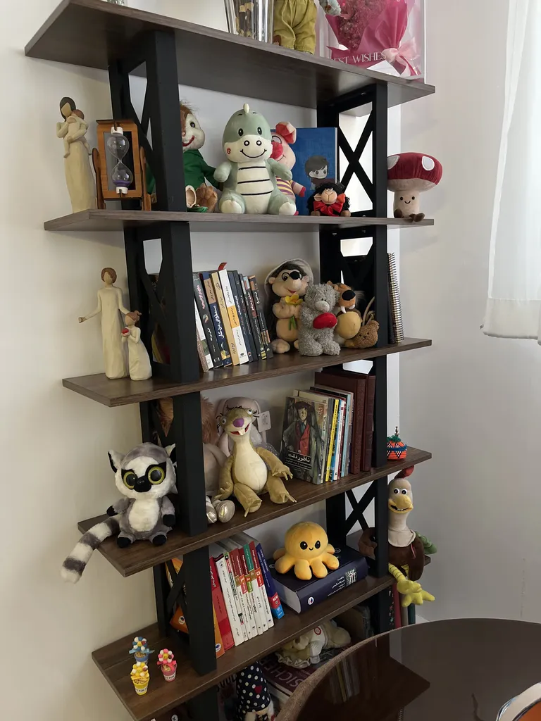 - ⬤ پایههای قابل تنظیم : پایههای قابل تنظیم به کاربران این امکان را میدهند که ارتفاع کتابخانه را بر اساس نیاز خود تنظیم کنند. خریداران از این ویژگی به عنوان یک مزیت بزرگ یاد میکنند و به راحتی نصب و استفاده از آنها اشاره میکنند. با این حال، برخی از خریداران به عدم ثبات کافی در برخی مدلها و مشکلاتی مانند لق زدن پایهها انتقاد کردهاند.