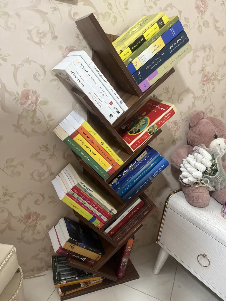 - ⬤ کتابخانه چندمنظوره : این نوع کتابخانهها معمولاً دارای طراحیهای خاصی هستند که میتوانند به عنوان دکور، قفسه کتاب و حتی استند گلدان استفاده شوند. خریداران به طراحی خلاقانه و کاربردی بودن این کتابخانهها اشاره میکنند و از فضای مناسب آنها راضی هستند. با این حال، برخی از خریداران به مشکلاتی مانند عدم دقت در ساخت و کیفیت پایین برخی مدلها انتقاد کردهاند.