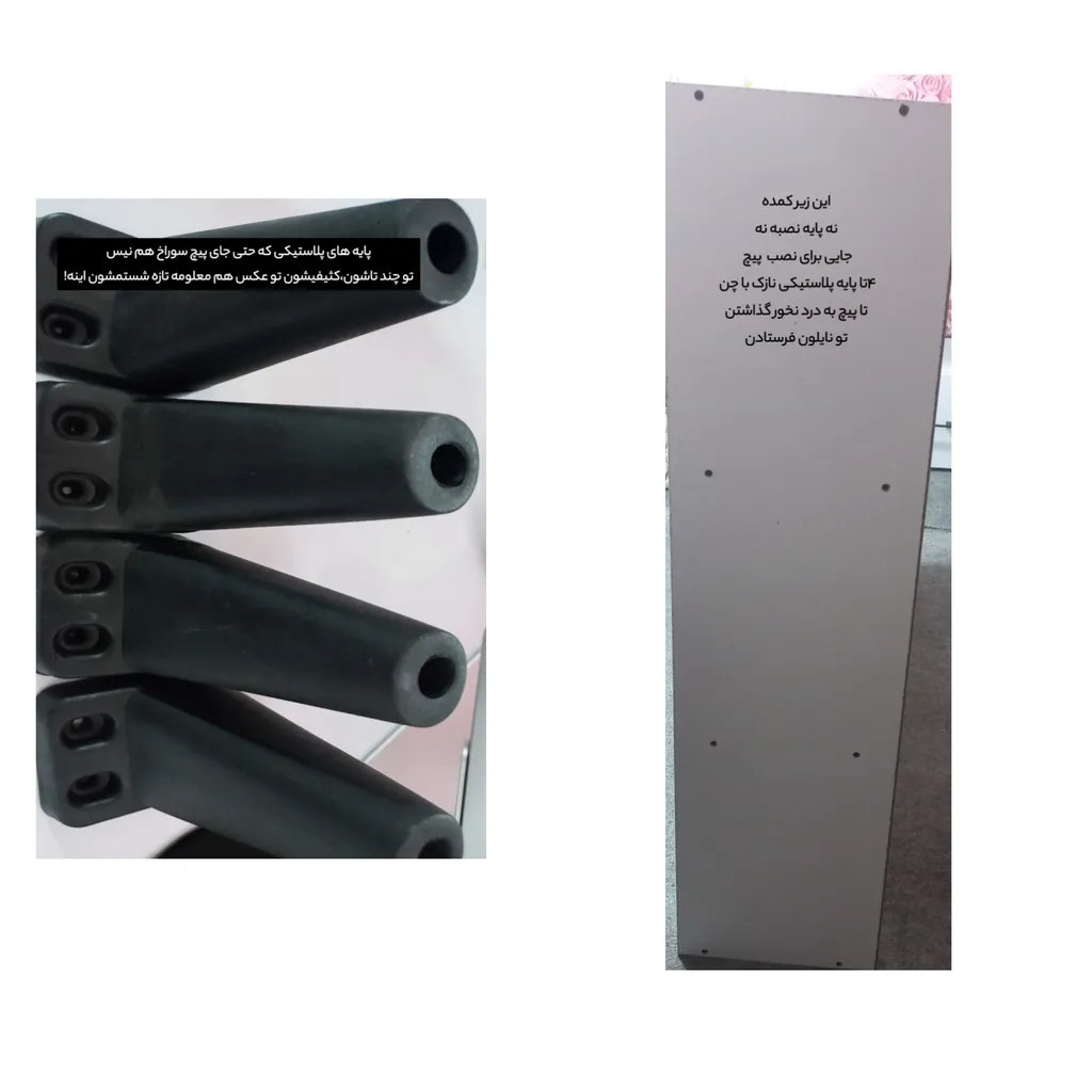- ⬤ معایب و نقاط منفی کالاهای ایرانی : با این حال، برخی خریداران به معایب موجود در کتابخانههای ایرانی نیز اشاره کردهاند. از جمله این معایب میتوان به مشکلاتی مانند عدم دقت در جزئیات ساخت، وجود زدگی یا آسیب در حین حمل و نقل، و همچنین نیاز به بهبود در کیفیت برخی از مواد اولیه اشاره کرد. این نظرات نشان میدهد که هرچند محصولات ایرانی نقاط قوت زیادی دارند، اما هنوز هم نیاز به بهبود و ارتقاء در برخی زمینهها وجود دارد. به عنوان مثال، برخی خریداران به عدم تطابق اندازههای اعلام شده با واقعیت و همچنین مشکلاتی در نصب و مونتاژ اشاره کردهاند که میتواند تجربه خرید را تحت تأثیر قرار دهد.