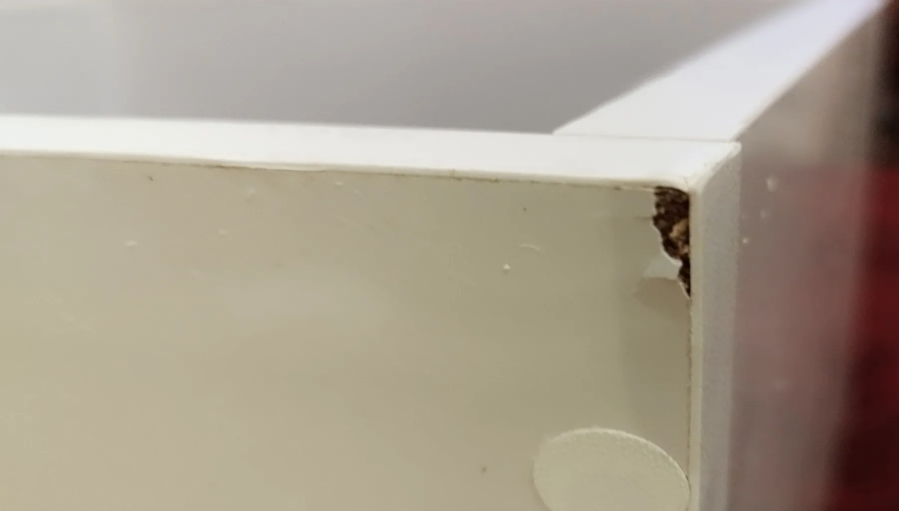 زهرا سلیمانی : 90یک گوشه از بالای کمد ضربه خورده بود و رنگ و چوب بلند شده بود داخل کمد چند جا رنگ پریده و داخل یکی از طبقات رنگ سبزابی بود، پیچ یکی از درب کمدافتاده بود خودم گذاشتم سرجاش که دیدم کلی ایراد داره و.... پر بود از خاک اره و به خودشون زحمت ندادن حداقل خاک اره هارو یه دستمال بکشن یا باد بگیرن