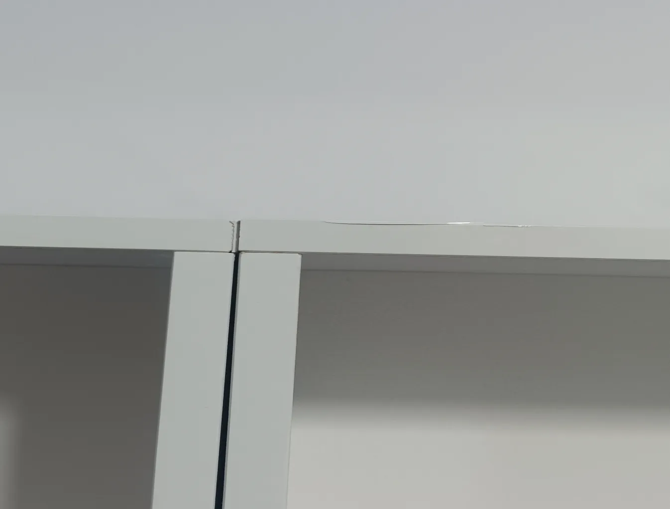 خداروشکر پشت شلف بسته بود(ورق ۳میل داشت) ولی از ۳ قسمت شکسته شده بود که نمیدونم موقع ساخت از ورق معیوب استفاده شده یا موقع حمل آسیب دیده...