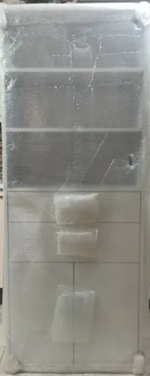 بسته بندی با پلاستیک ضربه گیر انجام شده بود ولی برای لبه های شلف ضربه گیر لبه نزاشته بودن که موقع حمل از دوقسمت آسیب جزیی دیده بود
