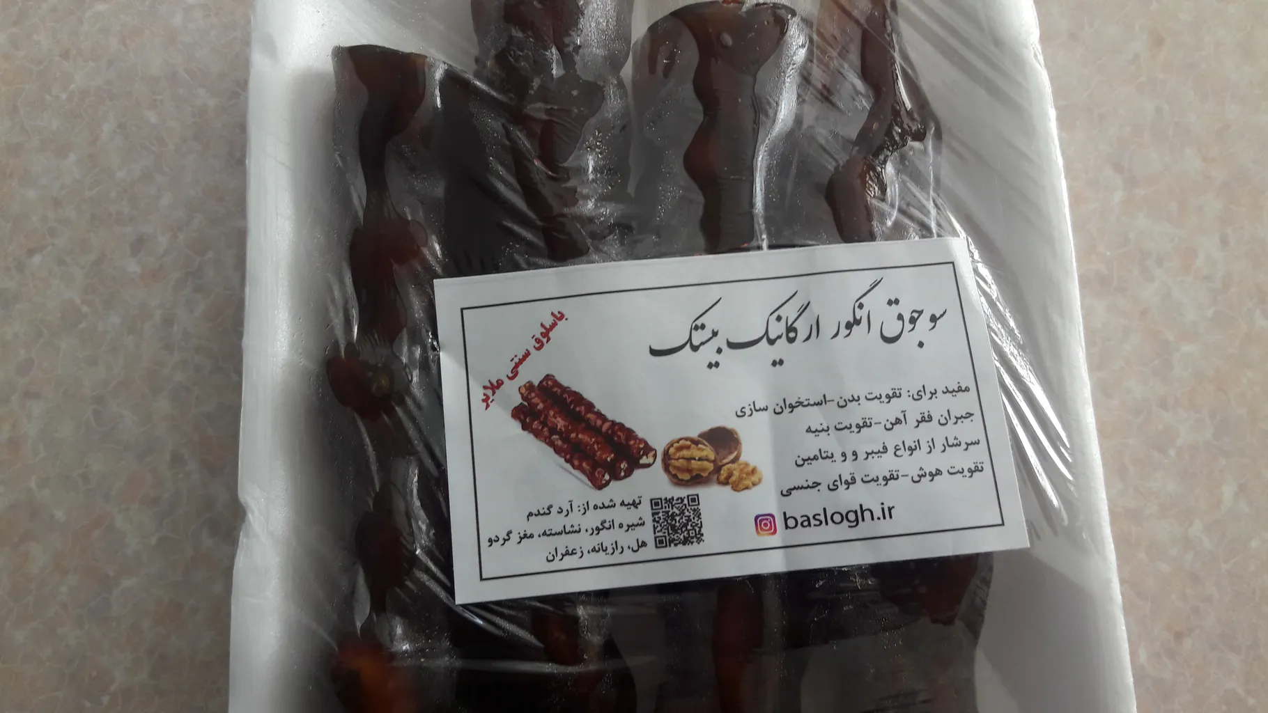 خلاصه نظرات خریداران دیجی کالا : "باسلق شیره انگور و خرما گردویی طعمی خوب و شیرین دارد و برخی کاربران از تازگی و عطر آن رضایت داشتهاند. محصول به عنوان گزینهای مناسب برای همراهی با چای معرفی شده و گفته شده که مغز گردوهای کار رفته در آن کیفیت بالایی دارد. در یک نظرسنجی، برخی کاربران بر این باورند که با توجه به تخفیفهای ویژه، ارزش خرید آن افزایش مییابد.", "متأسفانه، بسته بندی و نحوه ارسال این محصول انتقادات زیادی را جلب کرده است، بهویژه در زمینه چسبیدن سلفونها و تکه های ظرف به باسلق. برخی کاربران از مقدار کم گردو در محصول و همچنین زیاد بودن شیرینی آن شکایت کردهاند. تعدادی از نظرات نیز به کیفیت نامناسب در برخی خریدهای اخیر اشاره کرده است.", "به طور کلی، این محصول از نظر طعم و عطر خوب ارزیابی شده اما نیاز به بهبود در فرآیندهای مربوط به کیفیت و ترکیبات دارد. با این وجود، برخی کاربران از سفارش مجدد آن منصرف شدهاند، در حالی که برخی دیگر امیدوارند این محصول بهتر شود.",