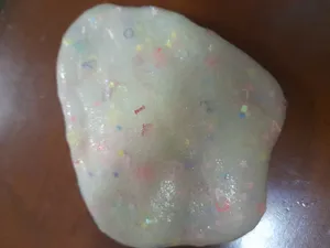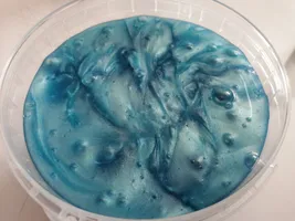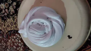 جنس اسلایم خامه ای نبود، یه اسلایم معمولی بود از همینا که اسباب بازی فروشیا دارن و موقع کشیدن به جای کش اومدن تیکه تیکه میشد، خوشم نیومد ازش👎🏻 من خودم بهش رنگ اضافه کردم