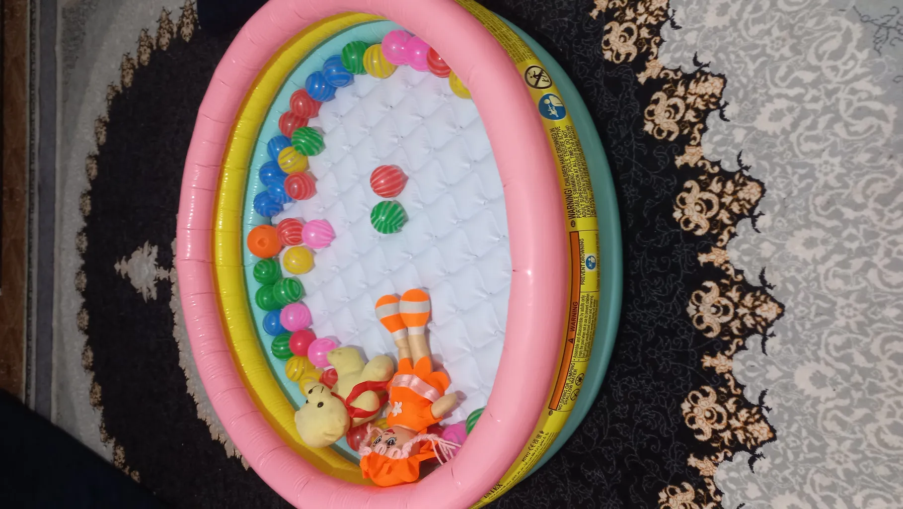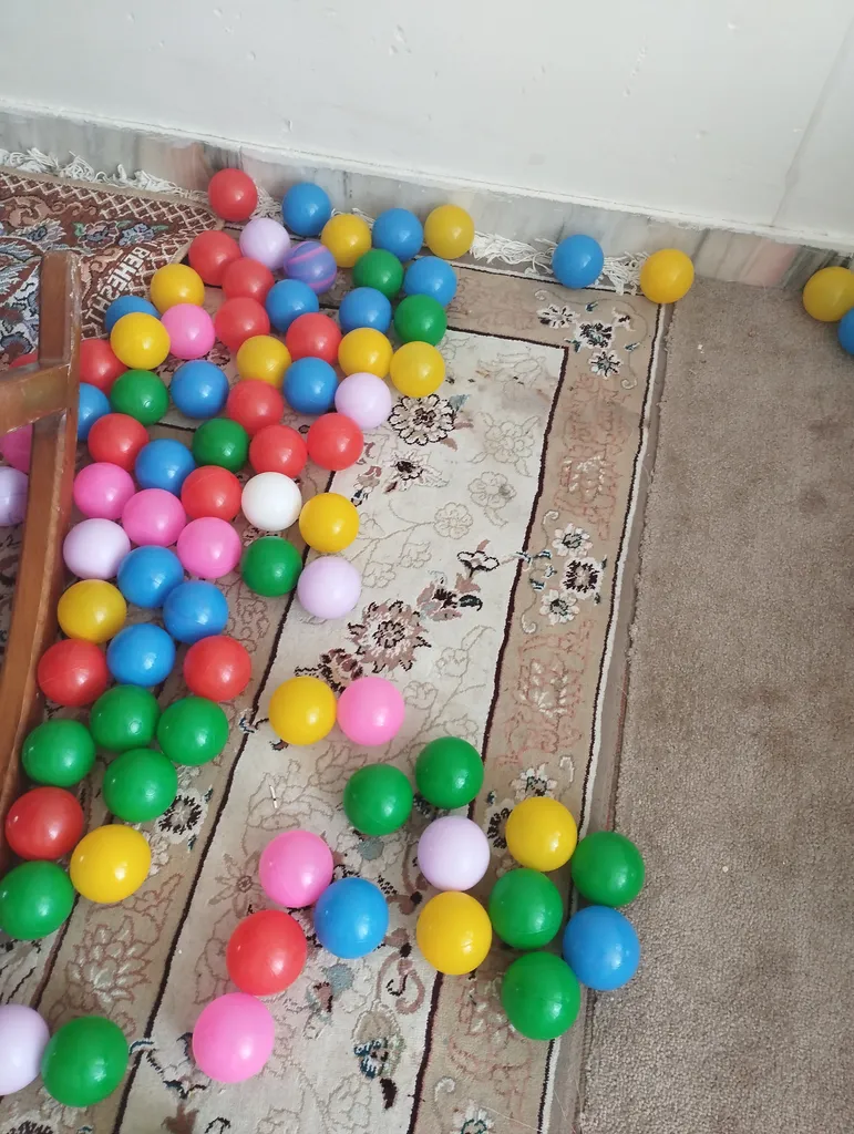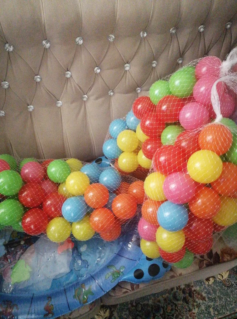 برای استخر توپ خریدم کف استخر هم باد میشه و نرم میشه ، رنگ های خوشرنگی داره و پسر ما که خیلی دوشت داشت.