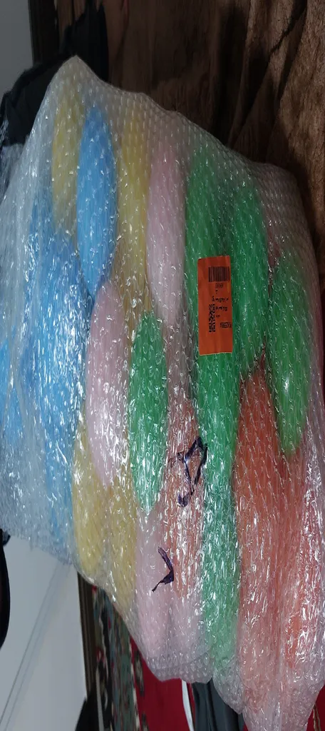 سحر درخشانیان : عدم تطابق رنگها با عکس ؛ سه بسته سفارش دادم که ۱۰٪توپها روشون نقطه و خط و خطوط داشت.رنگها اصلا مطابق عکس نیس و بنفش نداره بجاش طلایی کمرنگ که همگی خط داشت گذاشتن...کاش دقیقا اون تصویری که میذارن بفرستن چون خریدار میخواد همونو داشته باشه...تعدادو نشمردم...بار دوم ۲بسته سفارش دادم که شبیه به قبلیا باشه ۴ رنگ بیشتر نبود سبز.آبی.نارنجی.قرمز