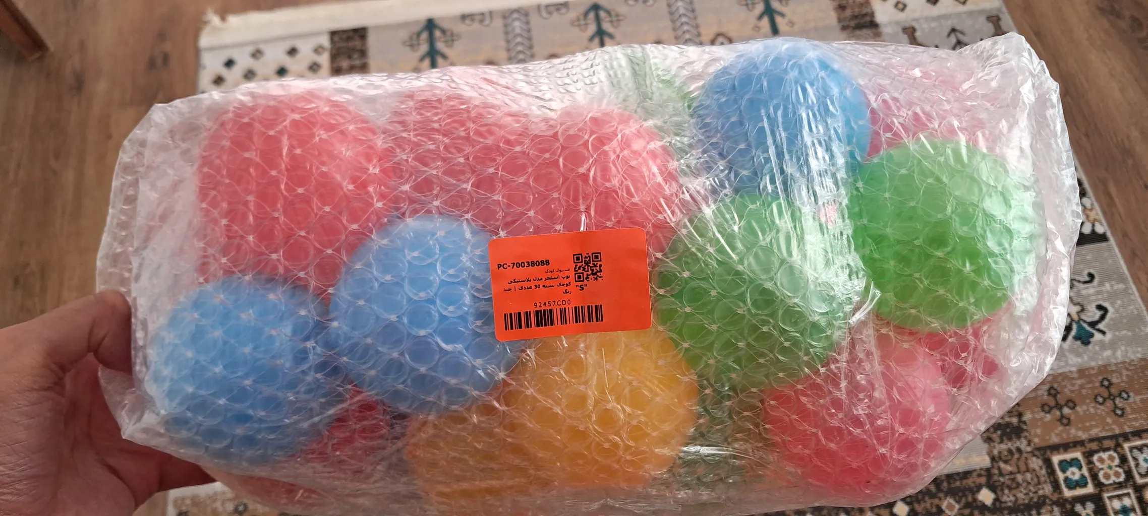 خریدار بدون نام : خیلی راضی نبودم ؛ من از این توپ مدل هفت رنگشو با اختلاف قیمت ناچیزی بیشتر از چند رنگش سفارش دادم و وقتی به دستم رسید بخاطر شرایط کرونا کل توپ ها رو یکی یکی ضد عفونی کردم اما بعد متوجه شدم بجای هفت رنگ شش رنگ برام آوردن. وقتی گزینه های مختلفی برای انتخاب هست و با توجه به نیازت یکی رو انتخاب میکنی خیلی مهمه که همون مورد رو برات بیارن نه هرچیزی که دلشون خواست. مورد دیگه که اصلاً انتظارشو نداشتم تعداد 98 عدد توپ بجای 100 عدد قید شده در مشخصات بود. دوتا توپ کمتر اختلاف چشم گیری نداره ولی اگه اینطور فکر کنیم که در هر سفارش دو عدد توپ کمتر برای هر نفر ارسال بشه این بی اخلاقیه و به اعتماد مشتری لطمه میزنه