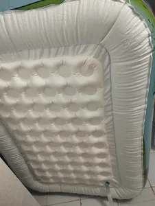 اندازه ها این نیست ؛ برای باد کردن از سشوار استفاده کنید بدون گرما . کامل باد نمیشه . چون کار سشوار این نیست ! در نهایت درب اصلی سفید رو ببندین . بعد در دوم که روی درب اول قرار داره و پلاستیکی است باز کنین و با دهان کمبود باد رو جبران کنید . یکم بادتون در میاد ! چند تا نفس محکم و عمیق و فوت کردن داخل درب جانبی کارو راه میندازه ظاهرش بسته است ولی با فوت یک طرفه هوا میده داخل . تو عکس گذاشتم که مشخص بشه. در نهایت وان رو ایستاده کنید و کف رو باد کنید . با دهن هم شدنی است . ولی تلمبه بهتره چون کلی باد میخواد ! تخلیه زیر تعبیه شده که بهش لوله خرطومی وصل میشه . احتمالا میشه روی چاه باشه و اب رو خارج کرد در نهایت امیدوارم به شادی استفاده بشه ! یا حق
