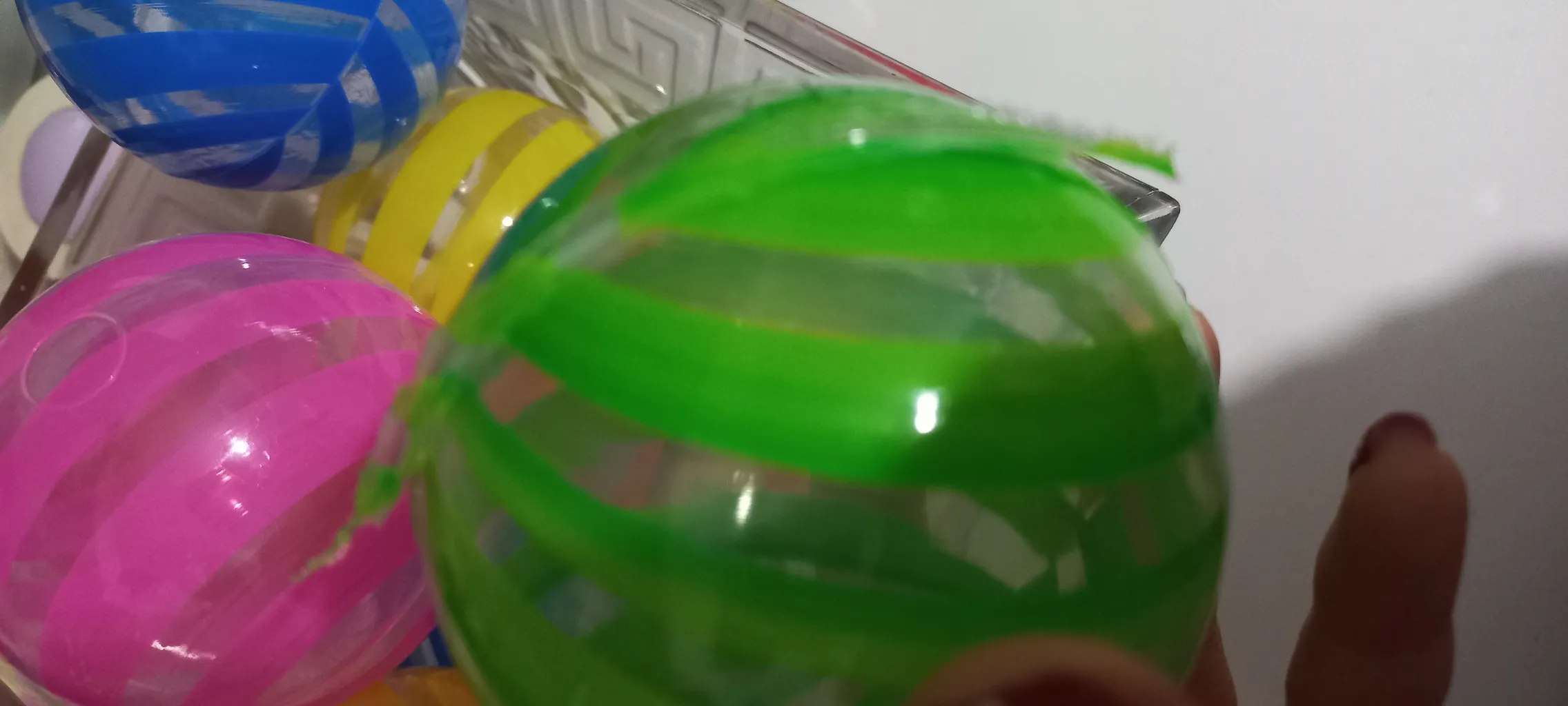 سحر درخشانیان : عدم تطابق رنگها با عکس ؛ سه بسته سفارش دادم که ۱۰٪توپها روشون نقطه و خط و خطوط داشت.رنگها اصلا مطابق عکس نیس و بنفش نداره بجاش طلایی کمرنگ که همگی خط داشت گذاشتن...کاش دقیقا اون تصویری که میذارن بفرستن چون خریدار میخواد همونو داشته باشه...تعدادو نشمردم...بار دوم ۲بسته سفارش دادم که شبیه به قبلیا باشه ۴ رنگ بیشتر نبود سبز.آبی.نارنجی.قرمز