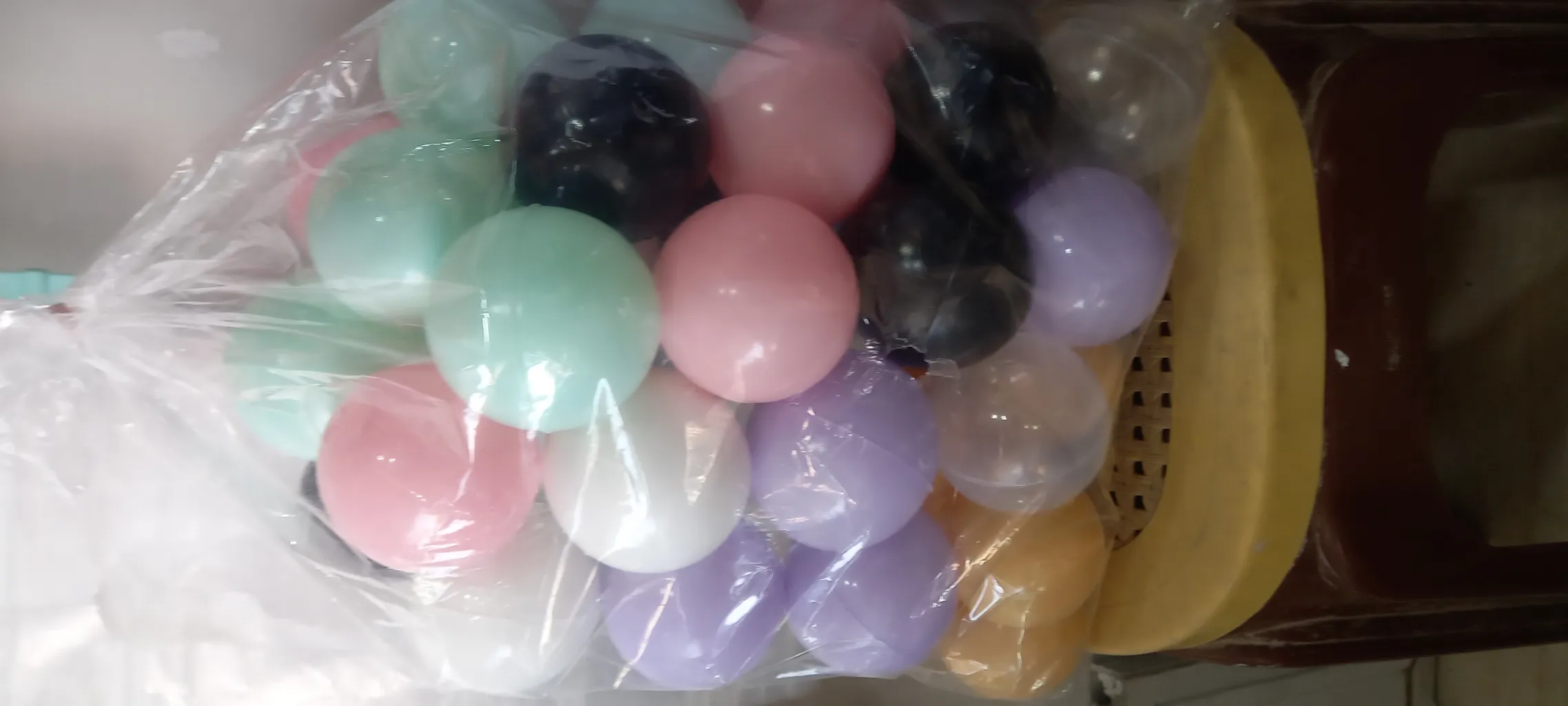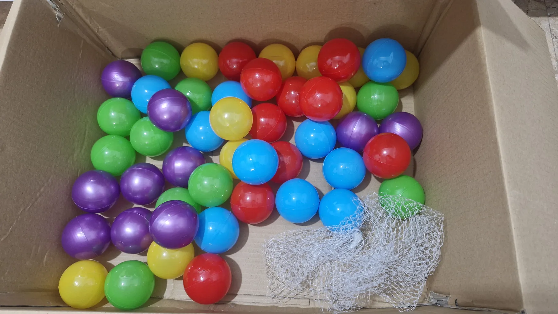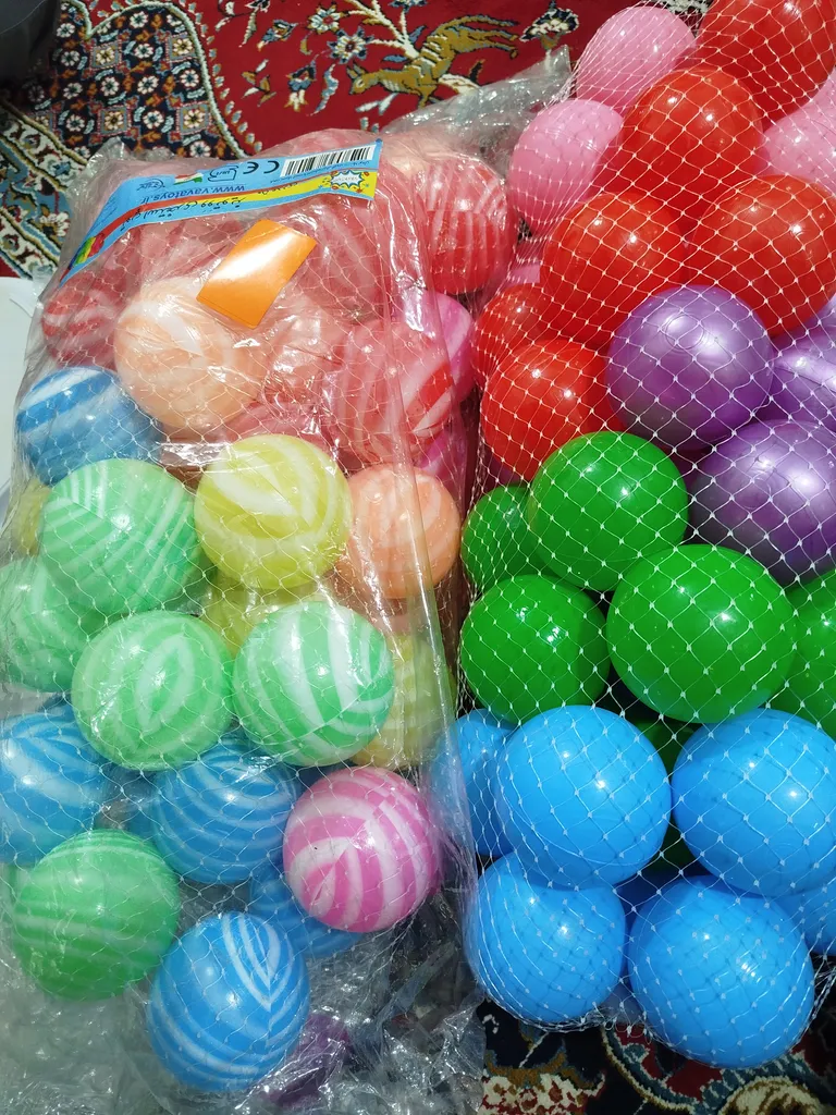 والا نشمردم شون ک ببینم دقیقا چند تا توپه اما به نظر همون صد تا میشه اما از بین شون یه تعدادی خراب شده بودن و کم باد بودن اما بخاطر تنوع رنگش راضی ام ازش اما کیفیتش زیاد جالب و محکم نیس