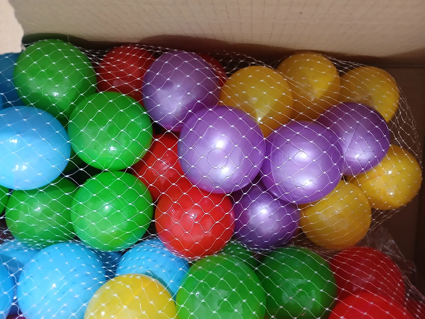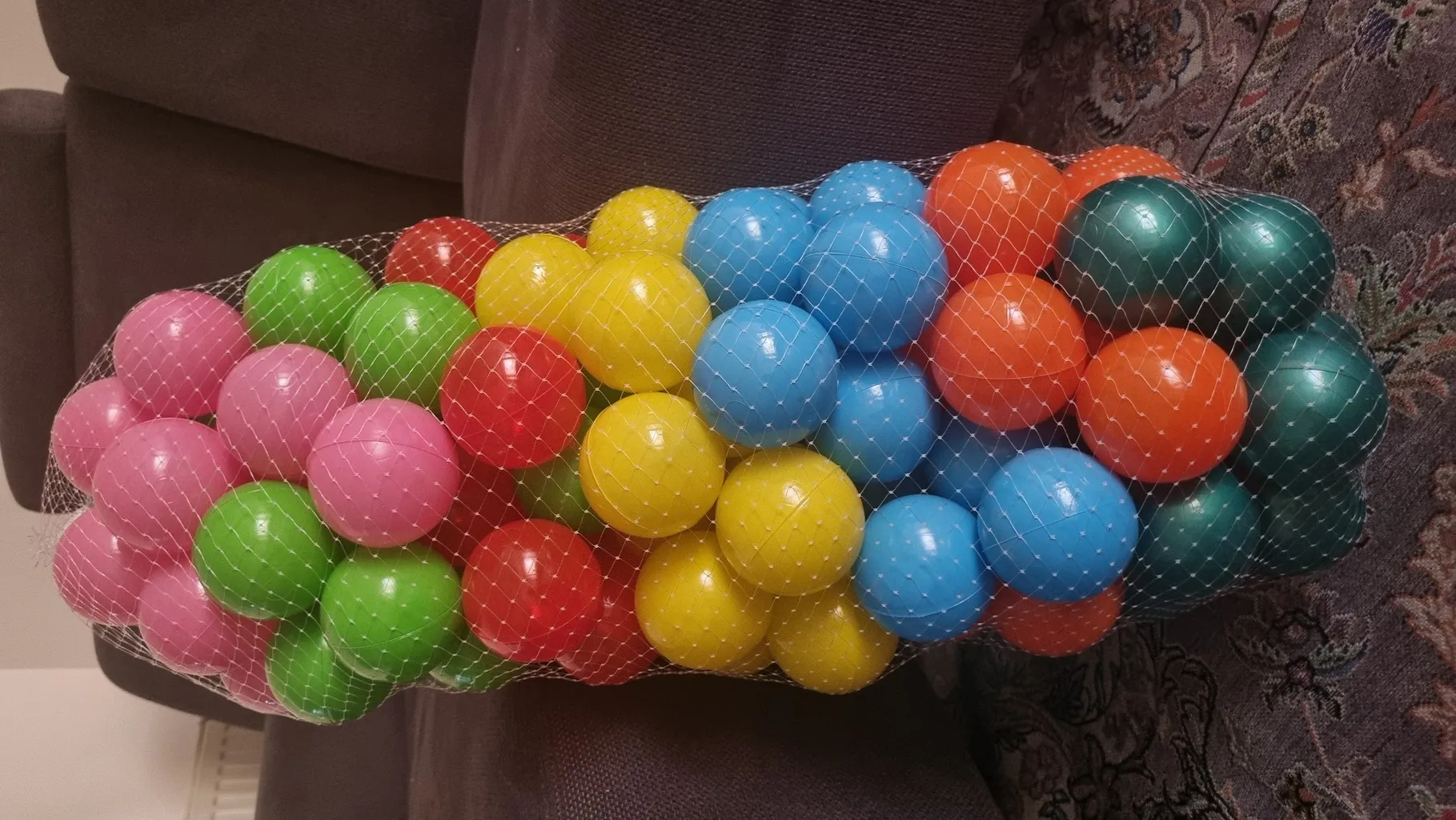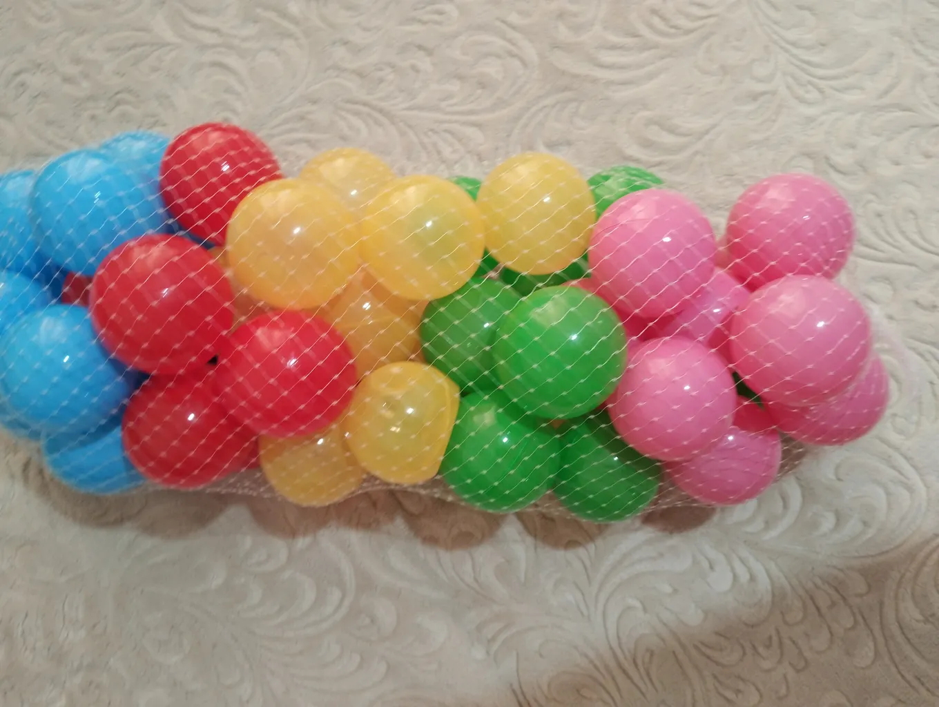 والا نشمردم شون ک ببینم دقیقا چند تا توپه اما به نظر همون صد تا میشه اما از بین شون یه تعدادی خراب شده بودن و کم باد بودن اما بخاطر تنوع رنگش راضی ام ازش اما کیفیتش زیاد جالب و محکم نیس