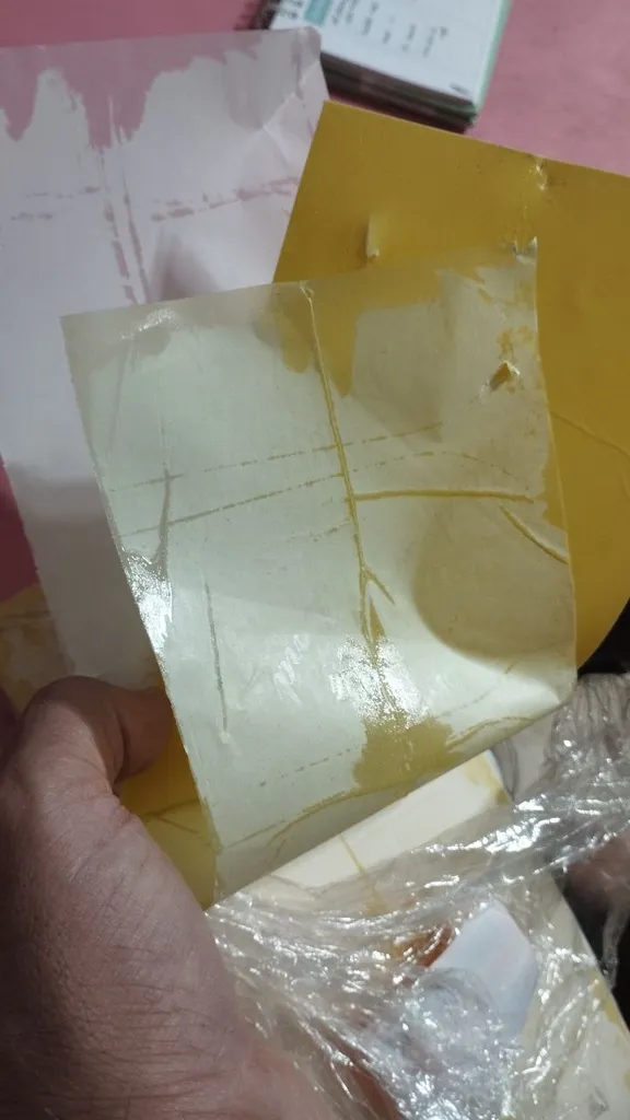 خریدار بدون نام : بی کیفیت. همه جای کاغذ آغشته به چسبه ؛ همه جای کاغذ آغشته به چسبه. حتی جایی که باید کنده بشه و دور انداخته بشه.