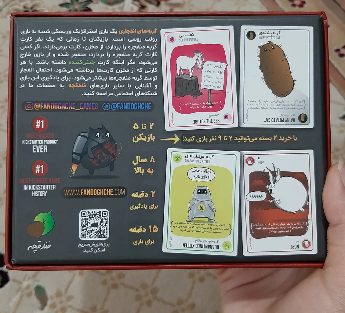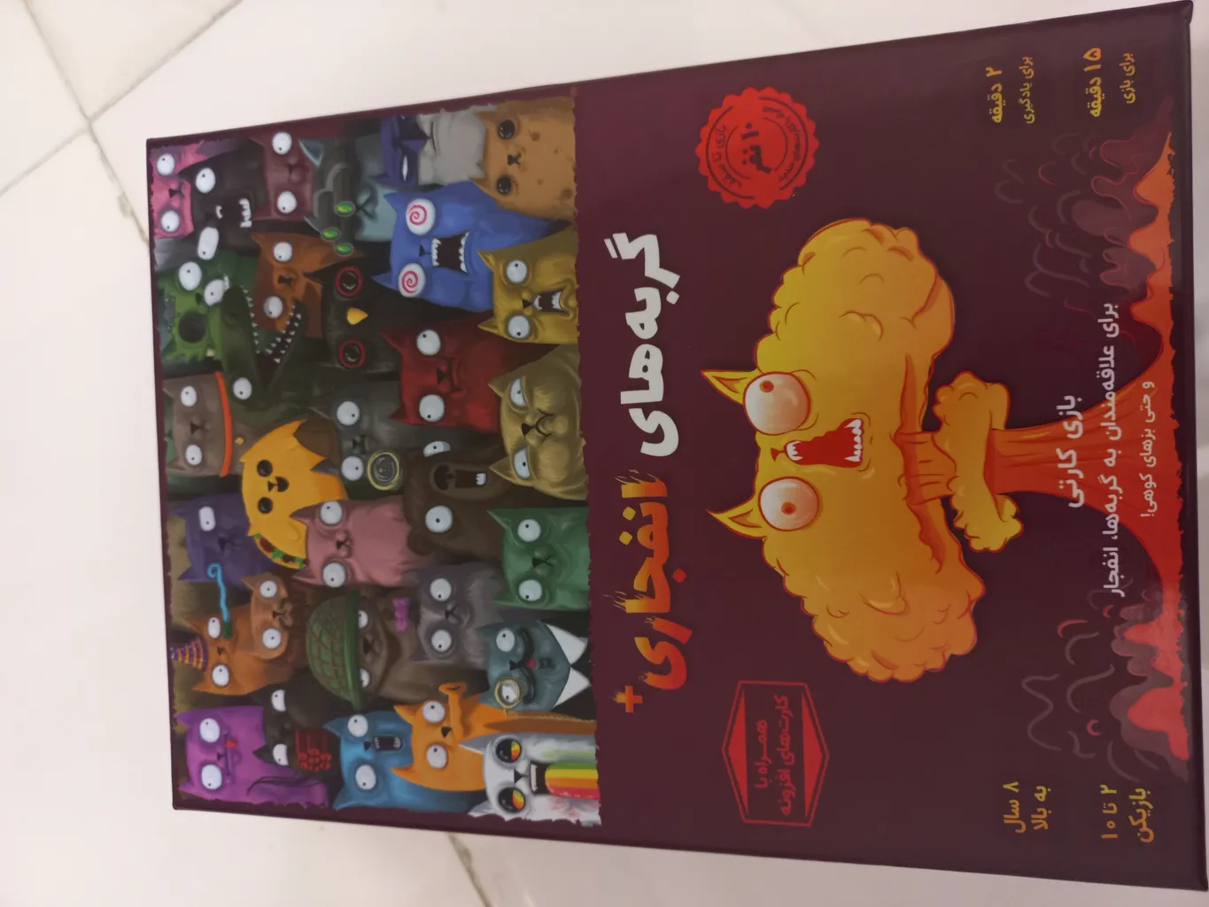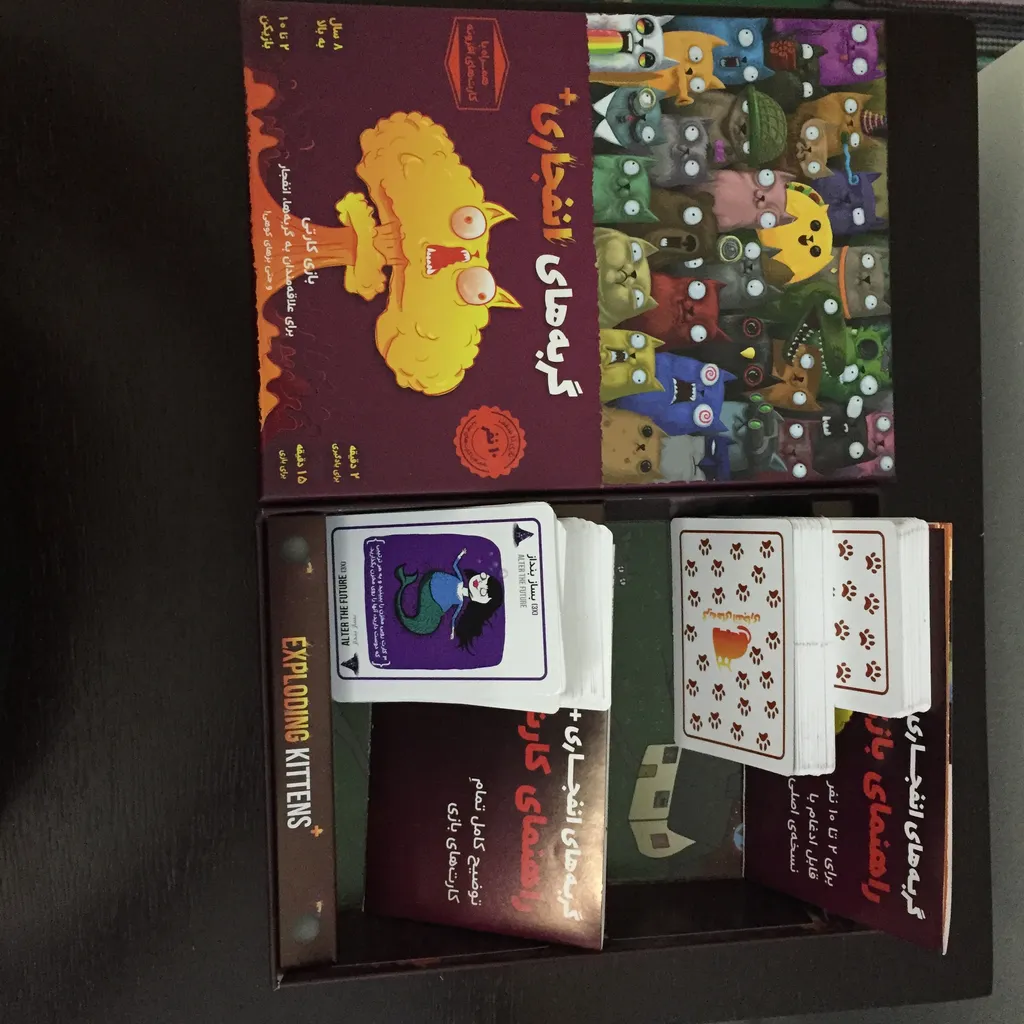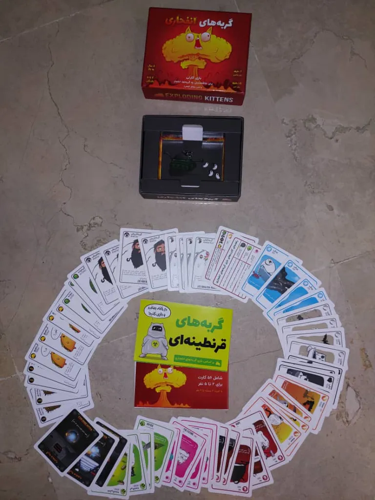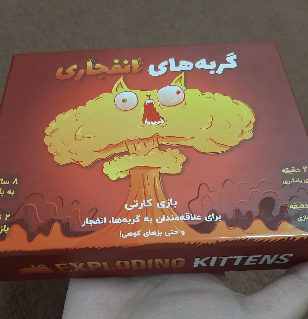 گربه های انفجاری ؛ بازی فوق العاده جذاب و خوبیه . پلاسش کارت های خلاقانه ای داره. کیفیت کارت ها می تونست بهتر باشه. جعبه اش هم کیفیت خوبی داره. قیمتش یه مقدار زیاده