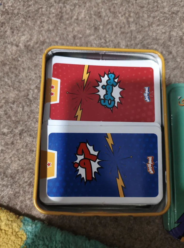 مهرپویا صادقی : خوب ؛ بازی خوبیه واسه بچه ها و بزرگسال ها یه جور پاسور واسه بچه ها حساب میشه ولی درکل چیز جالبیه . بازی هم اینطوریه که هرکس زودتر بتونه زودتر دستشو خالی کنه برنده هست . یکم کارت هاش کوچیکه ولی بخاطر این هست که کارت هاش بیشتره . دو دسته کارت هست . جنس کارت ها کاغذ گلاسه هست به راحتی پاره نمیشه . کلا چیز خوب و به صرفه ای هست و قیمتش خوبه پیشنهاد میکنم