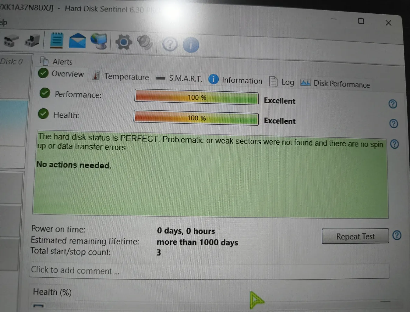 هارد رو از داریا مهر خریدم و با برنامه hard disk sentinel چکش کردم و متوجه شدم هاردی که به عنوان نو به من فروختن ۱۲۰۰ روز کار کرده و فقط حدود ۶۰۰ روز از عمرش باقی مونده یعنی عملا بیشتر عمر هارد گذشته از دیجی کالا توقع نداشتم دیگه کالای دسته دوم بجای نو بفرسته من که مرجوع میکنم
