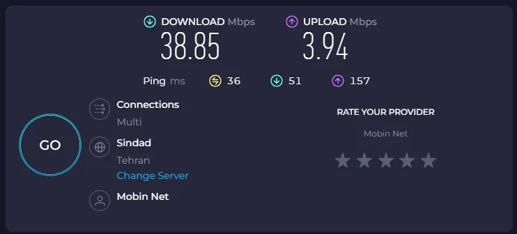 خریدار بدون نام : اپلود خیلی خوبی داره نسبت به بقیه سرویس دهنده ها مخصوصا مبین نت که اپلودش رو 500 کیلوبایت قفله من با این تا 33 مگابیت اپلود گرفتم هرچند تعرفه هاش نسبتا گرون هستش ولی خب دانلود و اپلود بالایی هم داره که طبیعیه