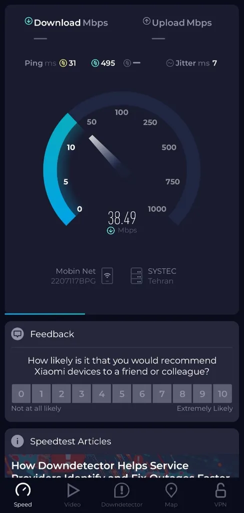 اپلود خیلی خوبی داره نسبت به بقیه سرویس دهنده ها مخصوصا مبین نت که اپلودش رو 500 کیلوبایت قفله من با این تا 33 مگابیت اپلود گرفتم هرچند تعرفه هاش نسبتا گرون هستش ولی خب دانلود و اپلود بالایی هم داره که طبیعیه