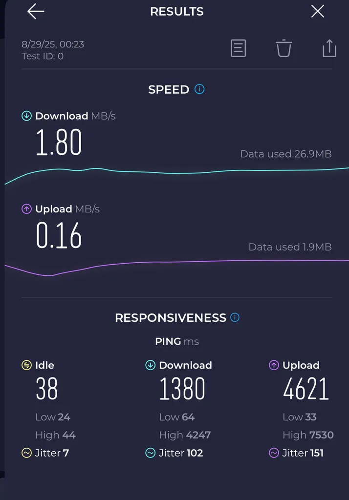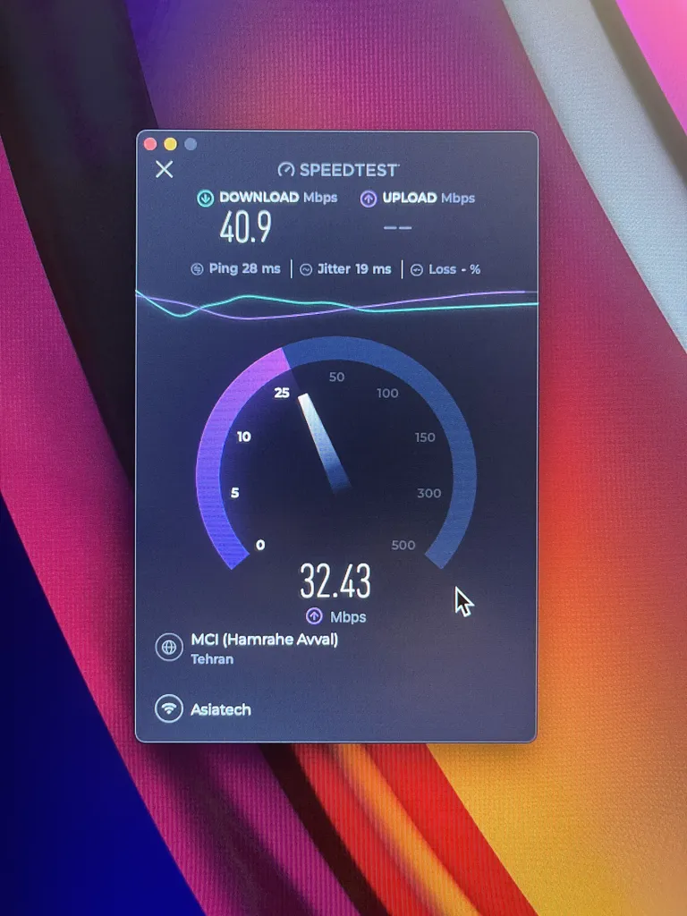 بعد از دو روز استفاده ازش متوجه شدم که پینگ و جیتر بالایی داره نسبت به بقیه اپراتور ها همچنین سرعتش نوسان زیادی داره و هر از گاهی هم قطع و وصل میشه