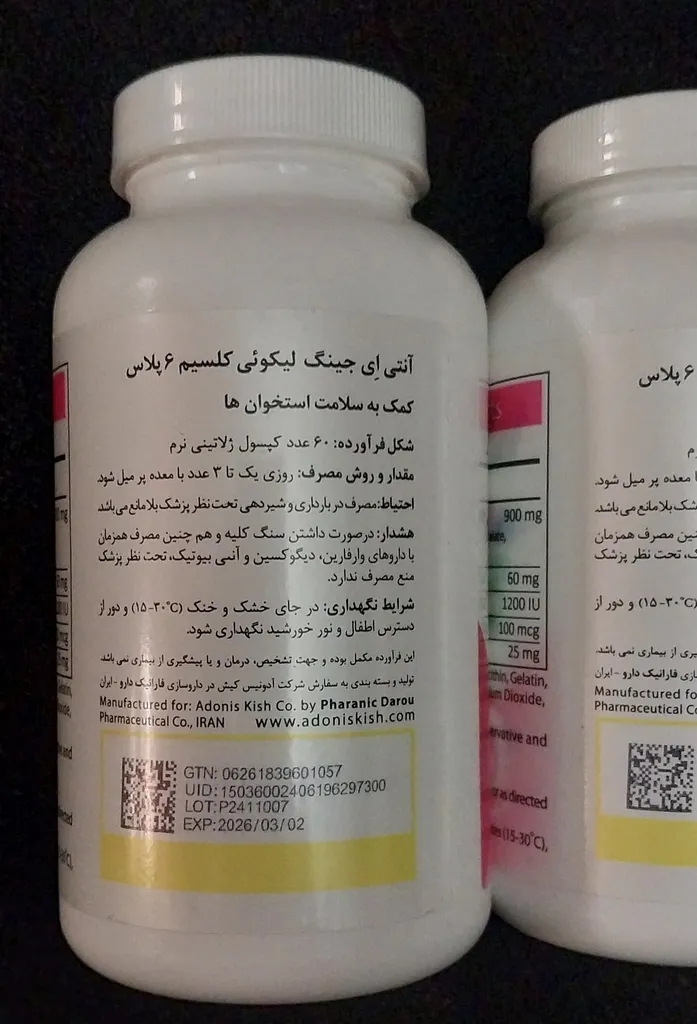نظر و تجربه خرید سافت ژل لیکوئی کلسیم 6 پلاس آنتی ایجینگ بسته 60 عددیدر تاریخ ۲۷ بهمن ۱۴۰۳