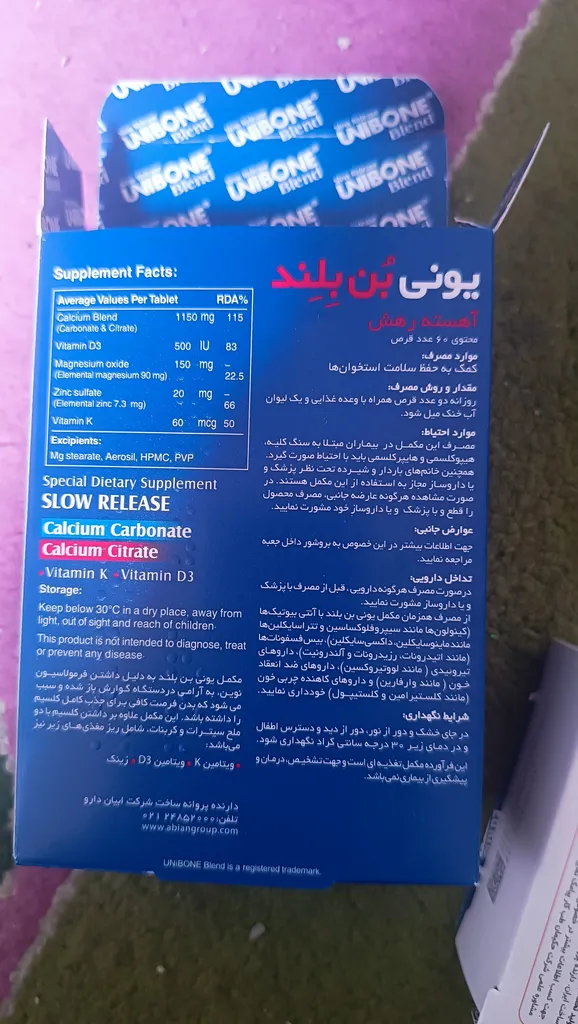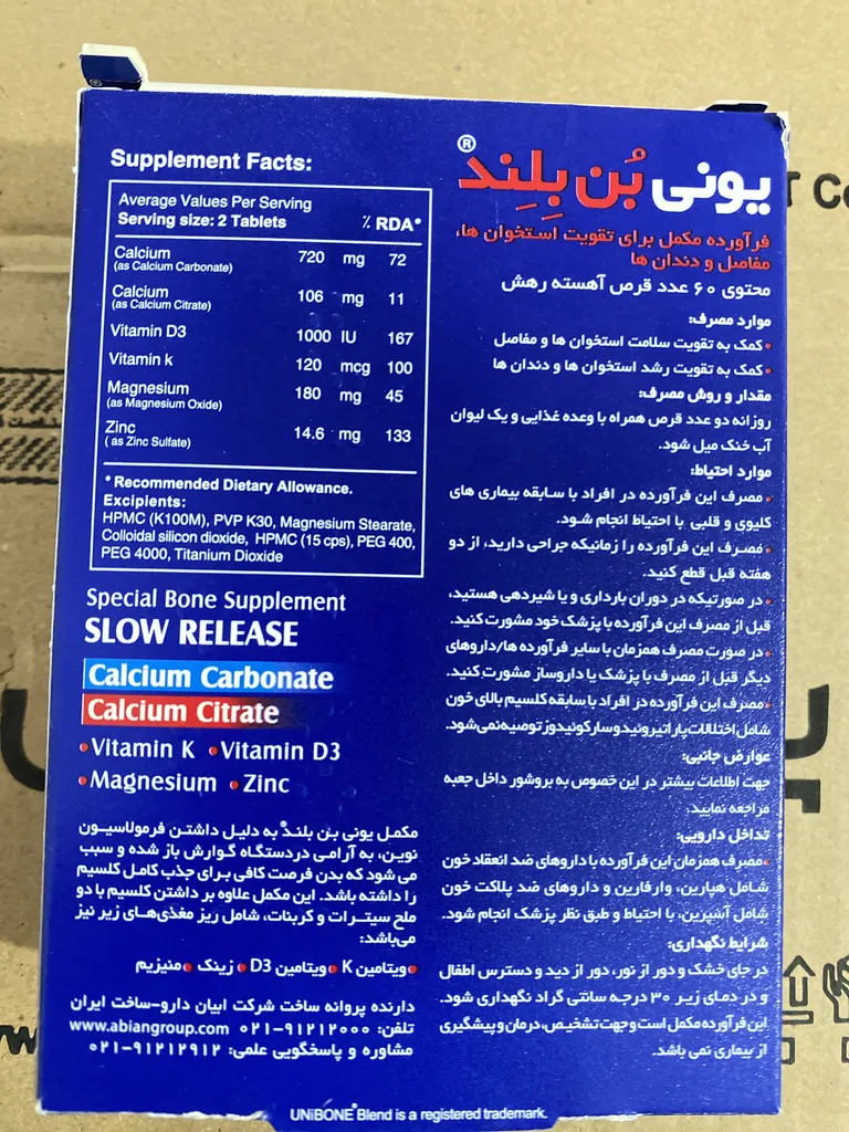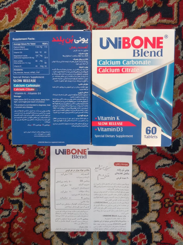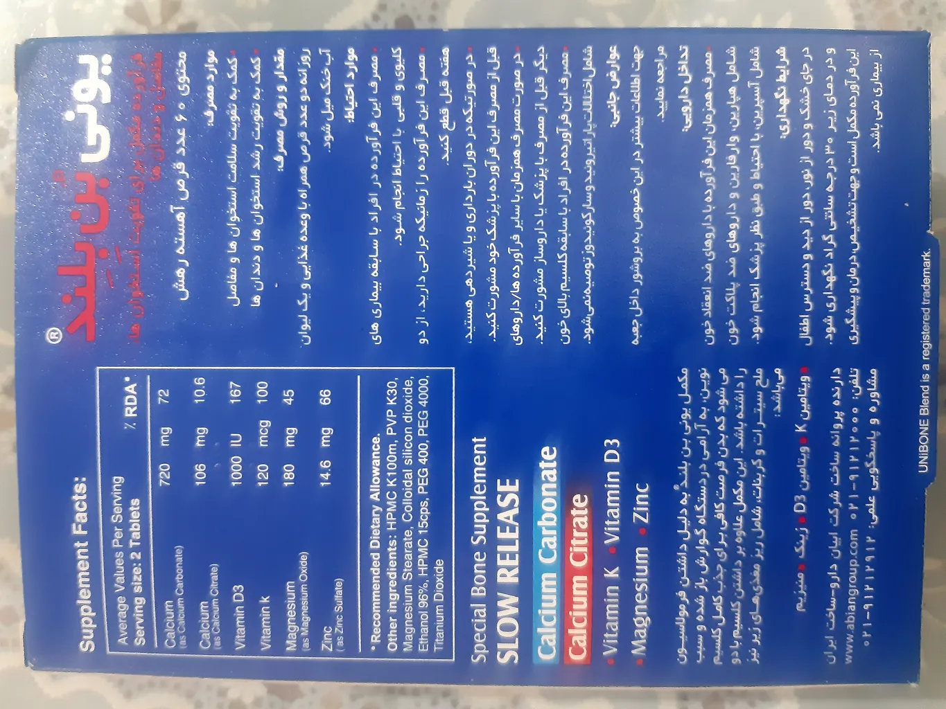 قرص یونی بن ؛ کلسیم هر وعده مصرفی باید ۵۰۰ باشه که این قرص ۱۰۰۰ هست برای تاثیر گذاری بیشتر قرص رو نصف کرده و در دو وعده همراه غذا میل کنید