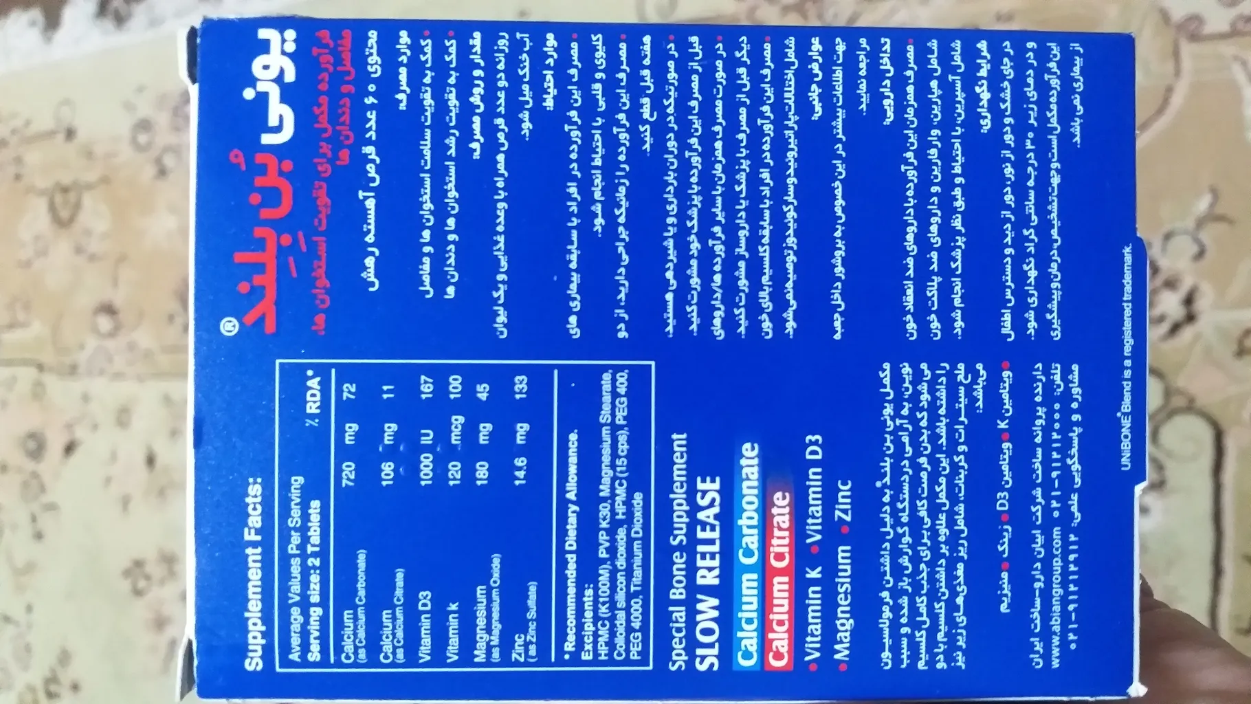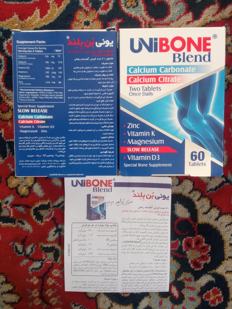 مغایرت کالا ؛ خیلی وقته از این مکمل برای پوکی استخوان استفاده می کنم اما تو آخرین خریدم متوجه شدم که مقادیر مواد موثره داخل هر قرص تو سری تولید جدید فرق کرده و عکس ها و توضیحات محصول هنوز مربوط به سری تولید قدیم هستش که باهم کلی فرق دارن ، موقع خرید و مصرف دقت کنید ، عکس سری قدیم و جدید رو می زارم تا بهتر متوجه بشید