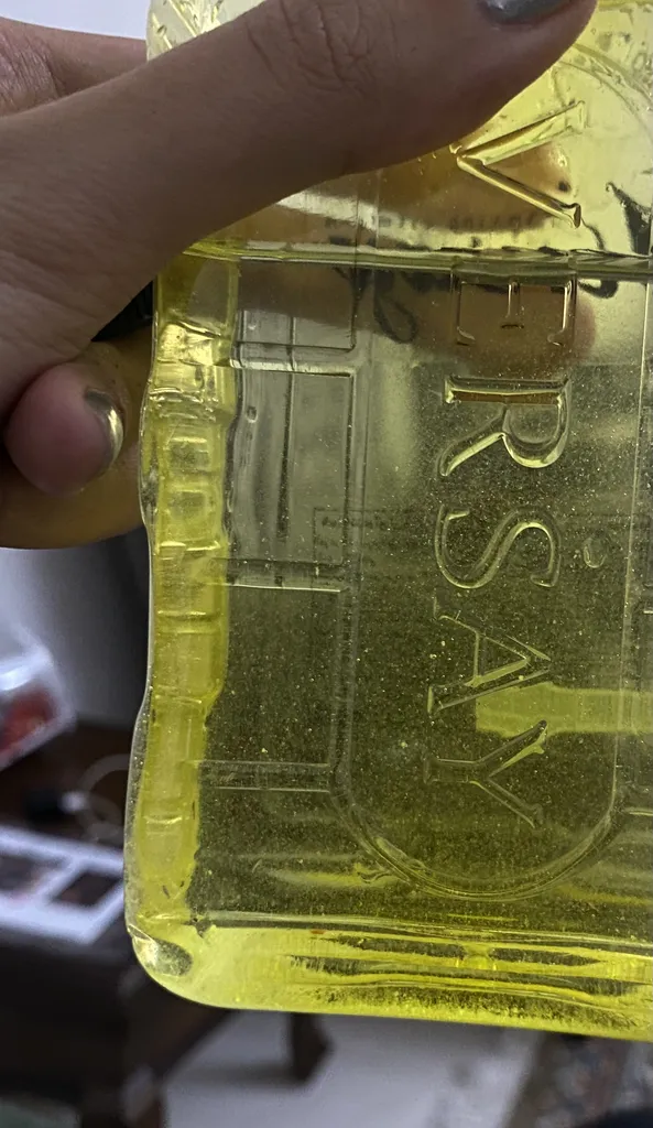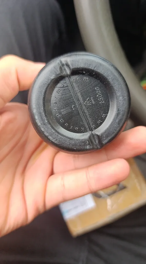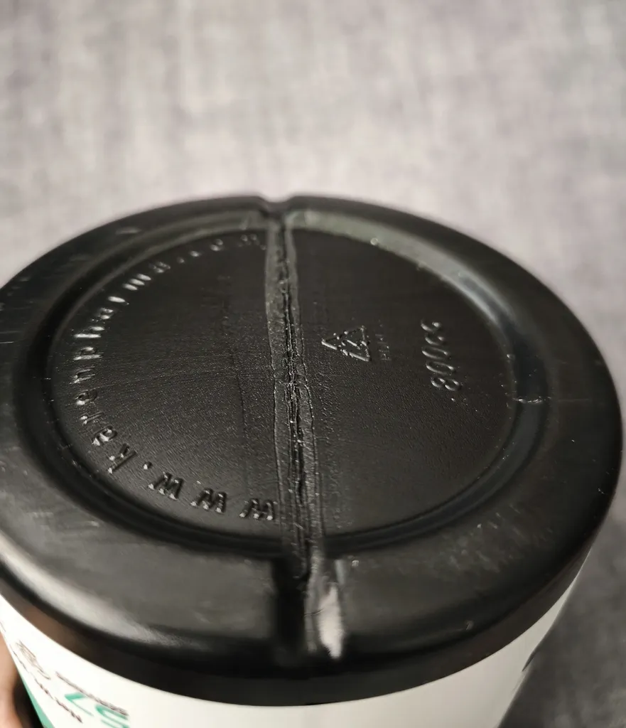 من وقتی رسید به دستم و پایینشو نگاه کردم فکر کردم تقلبیه یا باز شده و دوباره چسبونده شده ، خیلی ترسیدم و به پیج اینستای خود شرکت تولید کننده پیام دادم و گفتن که تو روند ساخت قوطی ها اون خط میوفته و جای نگرانی نیست