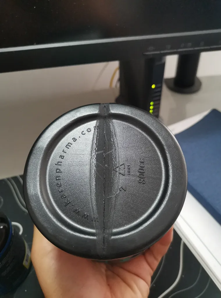 و برای قسمت پایینی محصول که همه میگن از اونجا برش خورده و پودر فیک اضافه شده ، این یه باور اشتباهه . احتمال بسیار زیاد این ظرف ها در خط تولید از پایین پلمپ می شوند وگرنه ممکن نیست که همه پودر ها در تمام داروخونه ها چنین مشکلی رو داشته باشند