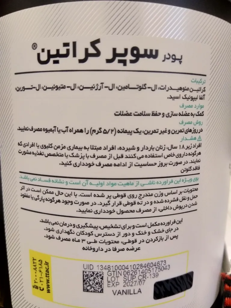 کراتین با کیفیتی به نظر میرسه و با توجه به محتویاتش که تحقیق کردم بین چند کراتین اینو انتخاب کردم