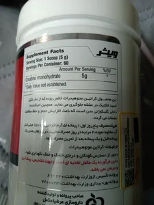 Creatine ؛ این کراتین برای افراد معمولی و مبتدی خیلی خوبه ولی کسایی که بیش از دو ساله تمرین میکنن شاید کمتر جواب بگیرن ازش بسته بندی درست بود اصالت رو چک کردم مشکلی نداشت تاثیرشم بد نیست و تقریبا خوبه هر یک اسکوپ این کراتین رو باید با ۳۰۰ میلی لیتر آب ولرم استفاده کنید کراتین چون سریع اشباع میشه تو آب، زیاد قابلیت حل شدن نداره و اگر مقدار و دمای آب درست نباشه، ته نشینی ش به چشم میاد مشکل ته نشینی ۵۰ درصد کراتینا خود آبه