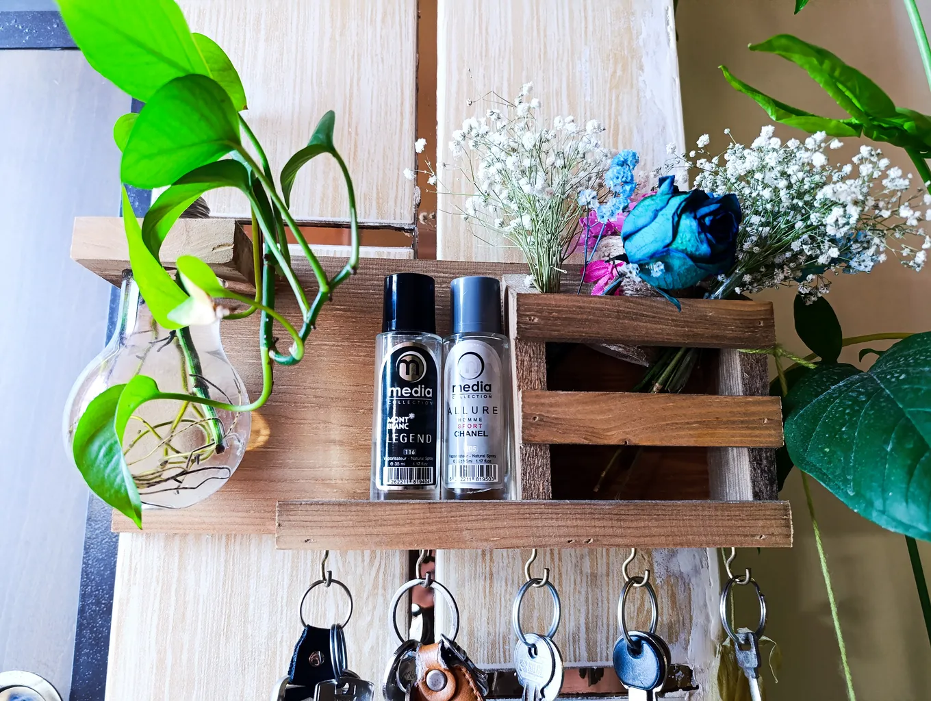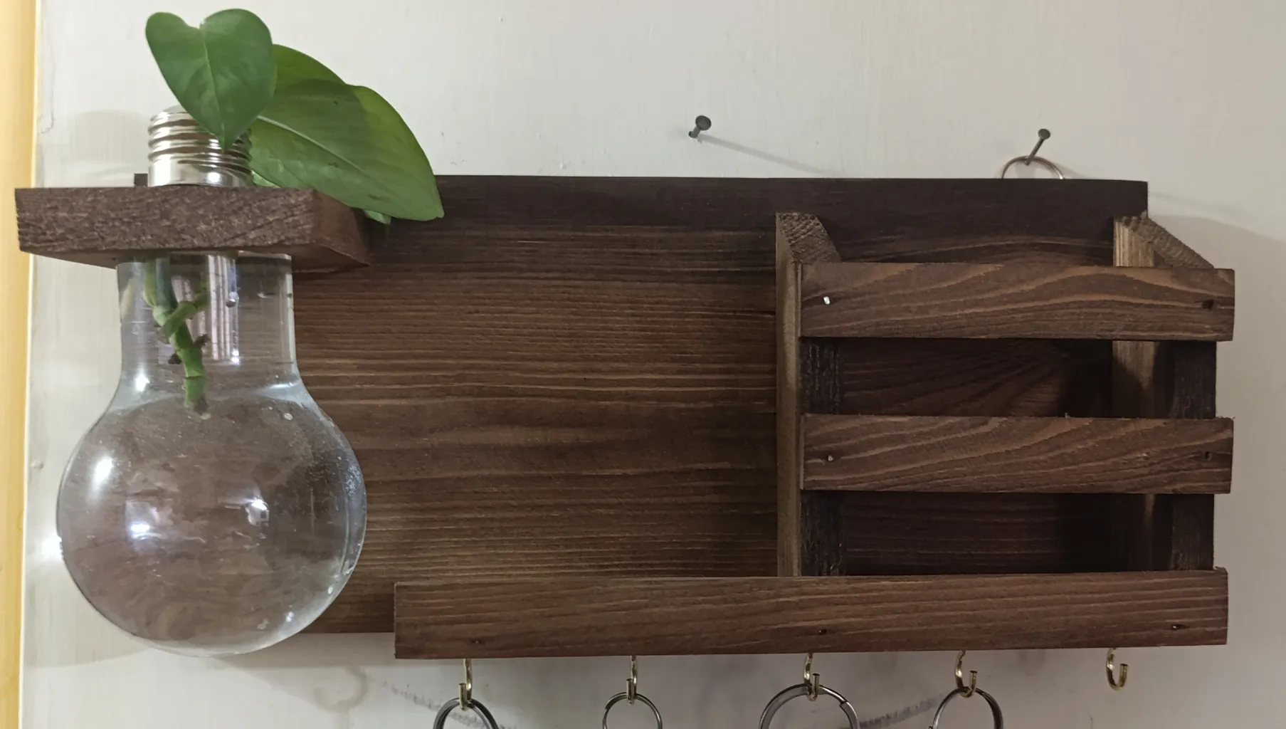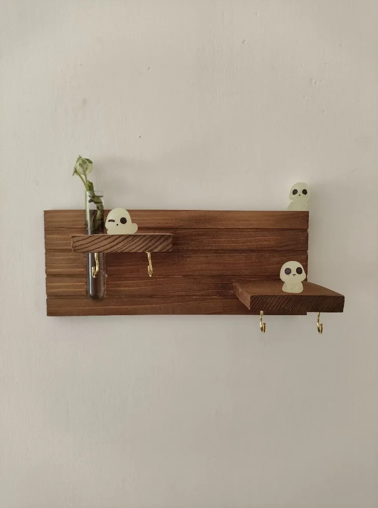 این جاکلیدی بنظرم طراحی خیلی جالبی داره و جالبتر اینکه میشه شخصی سازیش کرد.مثلا میتونیم تو گلدونش گیاه دلخواه مون رو قرار بدیم.رو قسمت وسطی هم میشه قاب عکس، مجسمه کوچیک و... گذاشت.ضمنا علاوه بر اینکه چهار تا آویز کلید داره، یه قسمتی هم هست که میشه توش کارت بانکی، جا کارتی، کیف مدارک و... گذاشت. خریدش رو توصیه میکنم فقط تو انتخاب فروشنده دقت کنید.اینی که عکسش رو گذاشتم که به دیوار زدیم جاکلیدی گالری بیس سیب هست