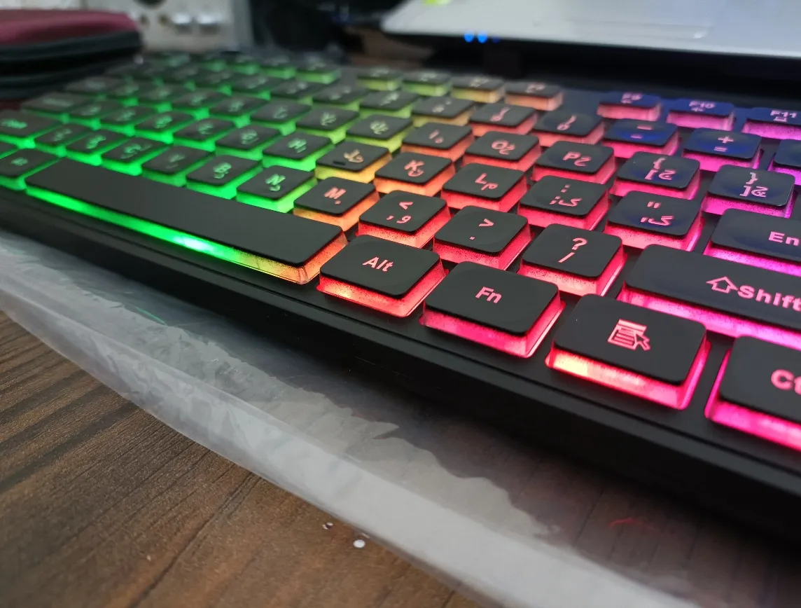 - ⬤ نور پسزمینه (بکلایت) : وجود نور پسزمینه به ویژه در محیطهای کمنور بسیار مفید است. خریداران از کیبوردهایی که نور یکنواخت و قابل تنظیم ندارند، ناراضی بوده و به دنبال مدلهایی با نور RGB و قابلیت تنظیم شدت نور هستند.