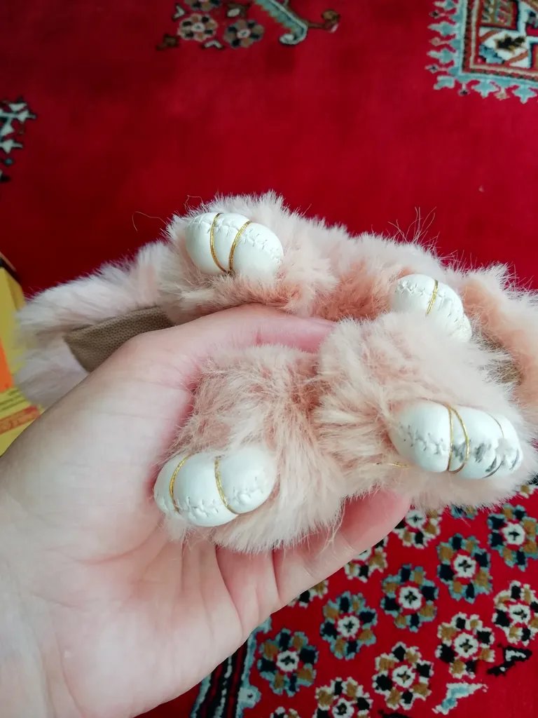 خریدار بدون نام : آویز خرگوش ؛ جنسش نرمه اونقدر پشمالو که چشاشش دیده نمیشه دوستان میگن ریزش پشم داره من که ندیدم با دست محکم که کشیدم چندتا از پشماش ریخت بهرحال بنظرم با این قیمت خوبه