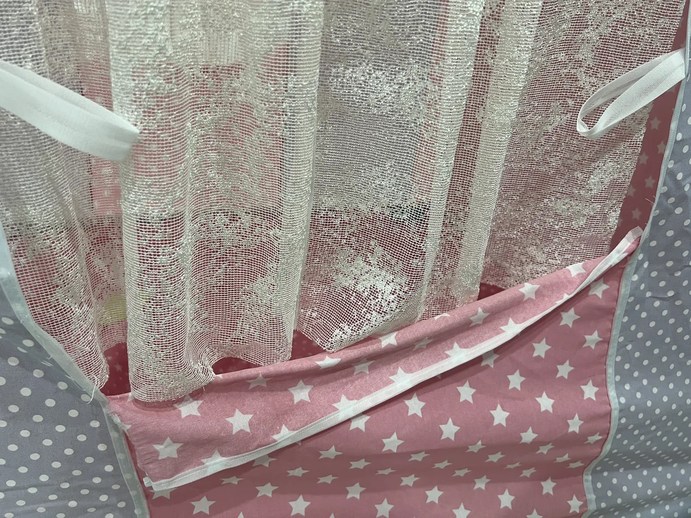 ترکیب رنگ و تور و جنس پارچه متفاوتِ سقفش خیلی جذابش کرده،سایزش بزرگ و جاداره