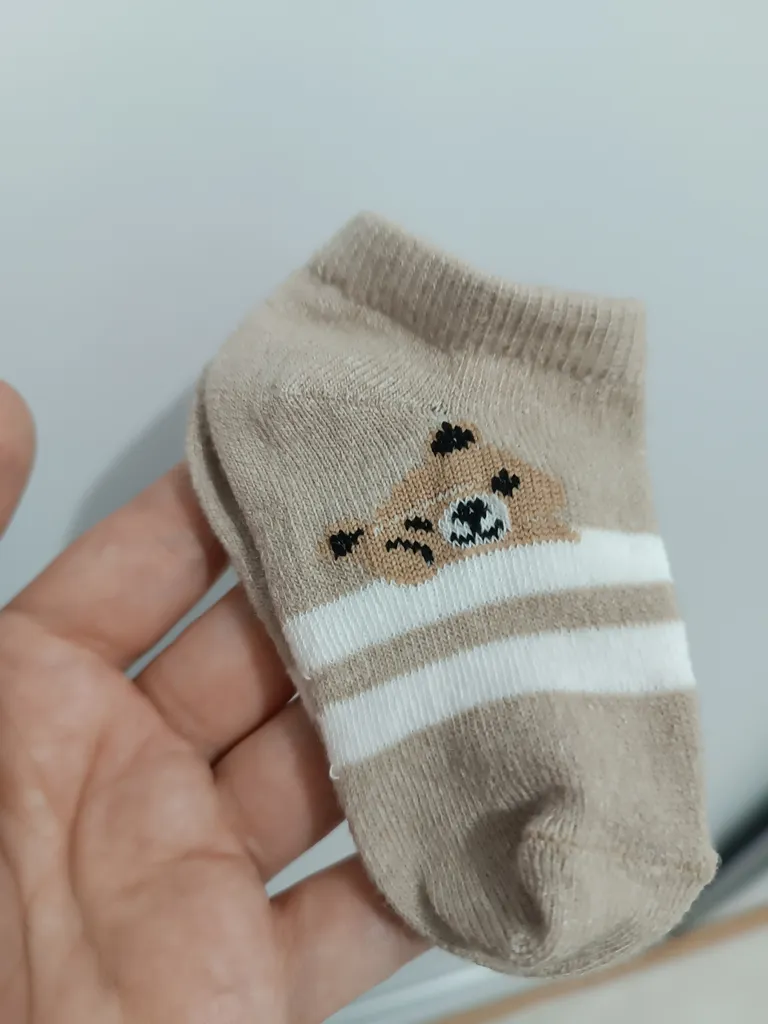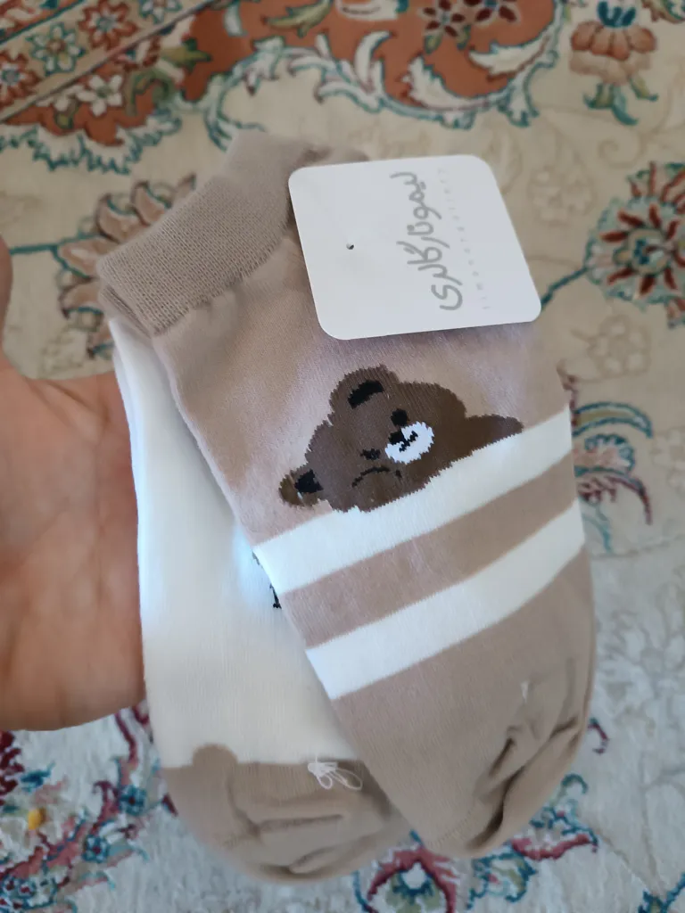 جوراب زیبایی هست قیمتشم مناسبه نمی دونم به بچه ۶ ماهه سایز میشه یا نه الان که نوزادم دو ماه و نیمشه کمی بهش بزرگه حس می کنم کرمش کرمی ک تو عکسه نیست حالت طوسی طور داره جنسش خوبه نرم و لطیفه