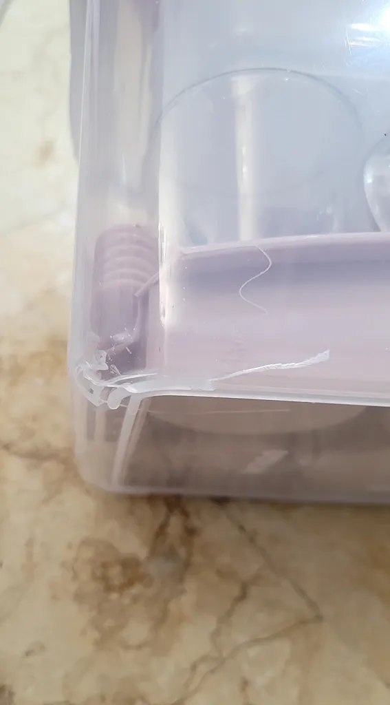 به علت بسته بندی نامناسب قسمت پایین ظرف شکسته بود و تا وسط طرف امتداد داشت شکستگی و که دیدم دیگه کلا بازش نکرده مرجوعش کردم، قبلنا دیجی کالا ارسالی ها رو توی کارتن و بسته بندی مرتب میذاشت الان فقط پیچونده بودن توی سلفون