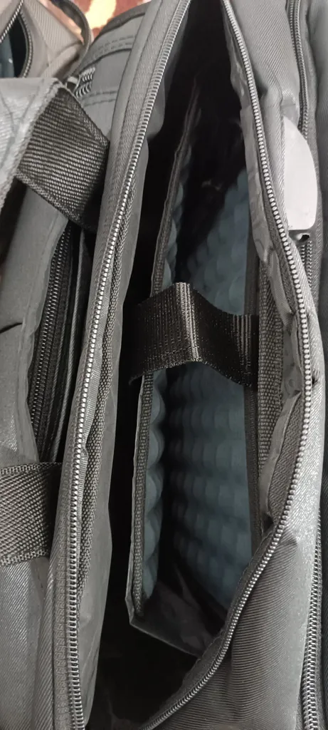 - ⬤ ضربهگیر داخلی : وجود ضربهگیرهای داخلی با کیفیت، مانند فوم EVA، برای حفاظت از لپتاپ در برابر ضربه و سقوط بسیار مهم است. خریداران از کیفهایی که این ویژگی را دارند، رضایت بیشتری دارند و احساس امنیت بیشتری میکنند. این ضربهگیرها معمولاً در قسمتهای کناری و زیرین کیف قرار دارند و به خوبی از لپتاپ در برابر آسیبهای احتمالی محافظت میکنند.