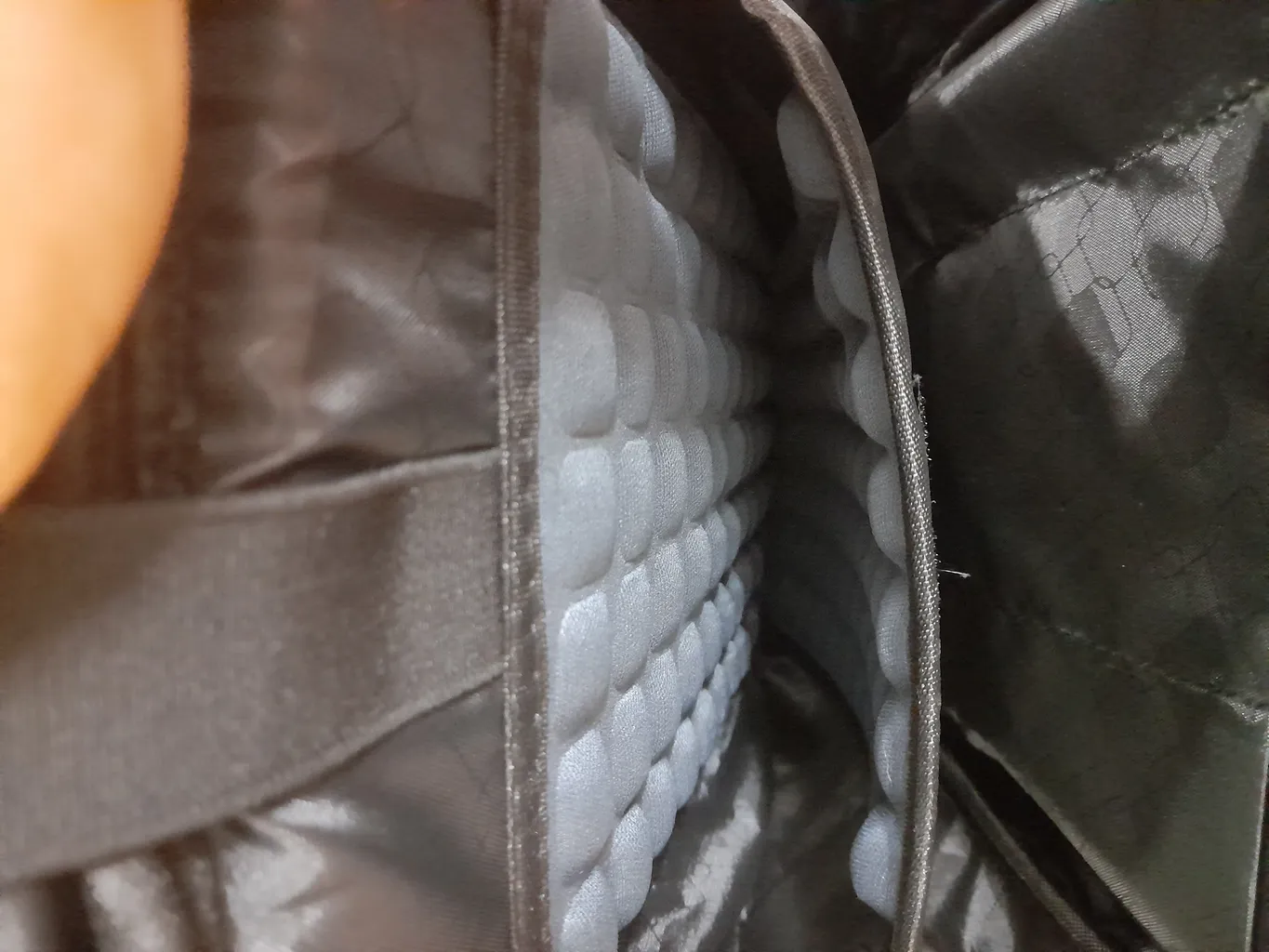 - ⬤ ضربهگیر داخلی : وجود ضربهگیرهای داخلی با کیفیت، مانند فوم EVA، برای حفاظت از لپتاپ در برابر ضربه و سقوط بسیار مهم است. خریداران از کیفهایی که این ویژگی را دارند، رضایت بیشتری دارند و احساس امنیت بیشتری میکنند. این ضربهگیرها معمولاً در قسمتهای کناری و زیرین کیف قرار دارند و به خوبی از لپتاپ در برابر آسیبهای احتمالی محافظت میکنند.