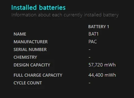 - ⬤ ظرفیت باتری : ظرفیت باتری، که معمولاً بر حسب میلیآمپر ساعت بیان میشود، تأثیر مستقیم بر مدت زمان کارکرد دارد. خریداران از باتریهایی با ظرفیت پایین ناراضی بوده و به دنبال گزینههایی با ظرفیت بالاتر هستند تا زمان بیشتری از لپتاپ خود استفاده کنند. باتریهایی با ظرفیت بالاتر معمولاً عملکرد بهتری در نگهداری شارژ دارند و میتوانند نیازهای کاربران را بهتر برآورده کنند.
