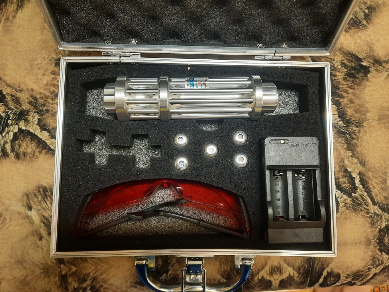 - ⬤ لیزر پوینتر آبی : این نوع لیزرها با طول موج 450 نانومتر کار میکنند و به دلیل رنگ خاص و جذاب خود، مورد توجه قرار گرفتهاند. خریداران از زیبایی و وضوح نور این لیزرها در شب و شرایط تاریک ابراز رضایت کردهاند. اما برخی از آنها از ضعف نور در روز و قیمت بالای این لیزرها شکایت کردهاند.