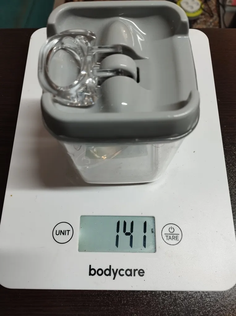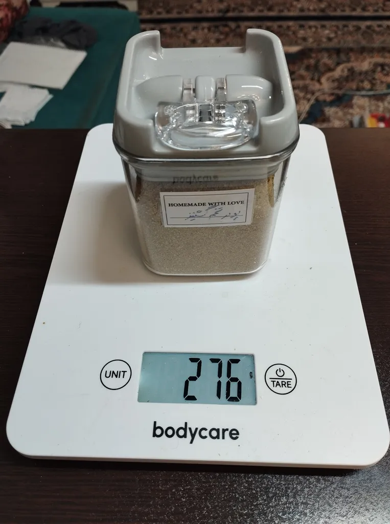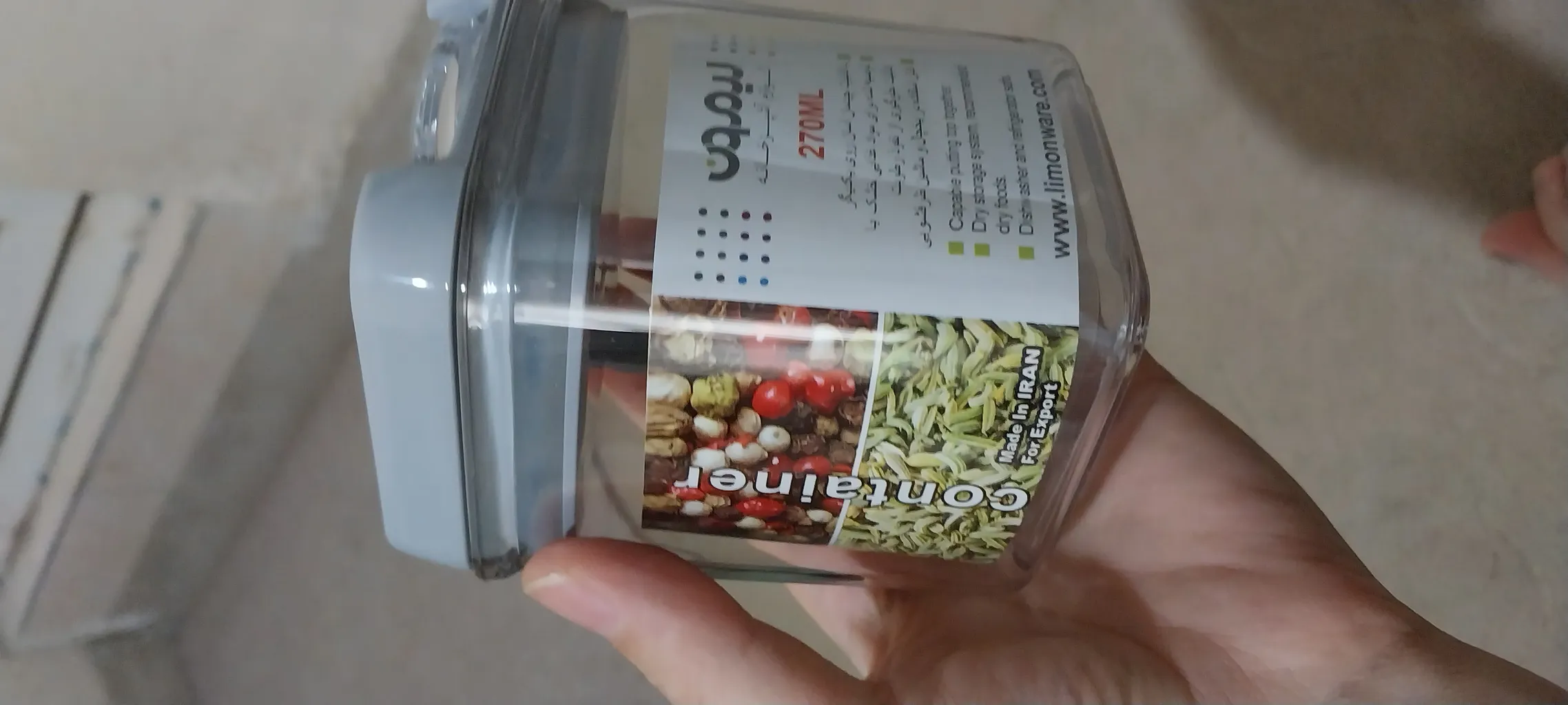درمورد این بانکه بخوام دقیق بگم وزن خود بانکه با قاشق دقیقا ۱۴۰ گرم هست و وقتی تقریبا تا قسمت درب با ادویه پرش میکنی طوری که دیگه قاشق به سختی داخلش جا میگیره میشه ۲۷۵ گرم. یعنی گنجایش ۱۳۵ گرم ادویه رو داره. ارتفاعش ۱۰ سانت و طول و عرضش ۷ سانت هست. خوبیش اینه که دربش کاملا چفت میشه و عطر و رایحه ی ادویه حفظ میشه . یک برچسب هم درداخلش هست که میتونید اسم ادویه رو روش بنویسید و بهش بچسوبونید. گنجایش ۱۳۵ گرمیش هم خوبه هم بد . خوب واسه اینکه زود به زود ادویه تازه شارژ میکنید بدیش اینه که بعضی چیزا رو مثلا ۲۵۰ گرمی میخرید و داخلش جا نمیشه