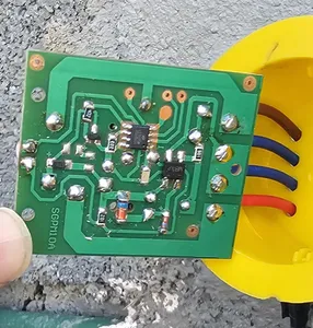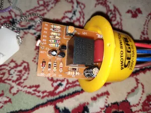 سیم های ابی مشترک (نول هستند)در اصل ۳ سیم هست. رله به کار رفته ظرفیت ۷ اسمی ۷ امپر داره نه ۱۰ امپر.ولی شما تا ۵ امپر بیشتر بهش فشار نیارید.اگر نه باید رله رو تعویض کنید.پتانسیومتر جهت تنظیم تاریکی هوا قرار گذاشته شده.کیفیت برد قابل قبوله