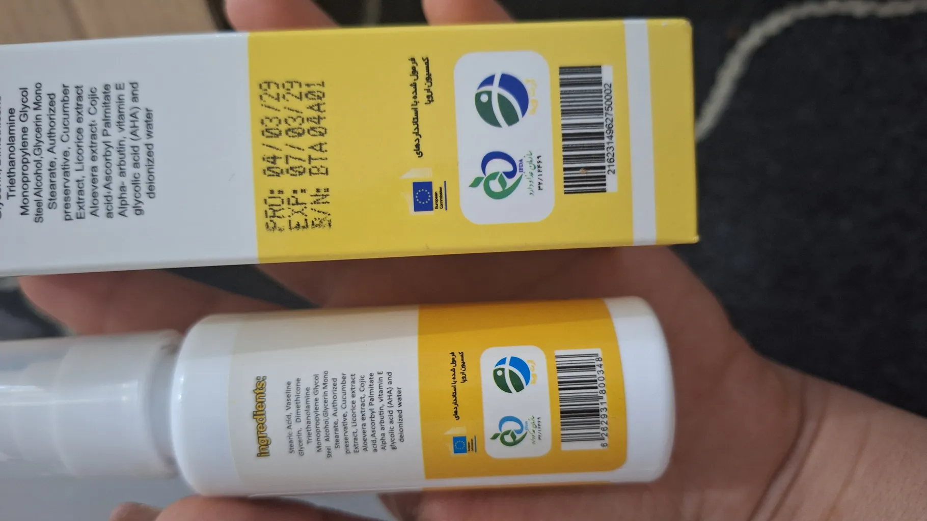 من خودم با توجه به نظرات خریداری کرده بودم و الان تقریبا یک دوره کامل از این کرم استفاده کردم و اومدم نظر خودم رو براتون بزارم. این کرم از نظر من واقعا کیفیت بالایی داره و خیلی موثره و تمام استاندارد هایی که لازمه داشته باشه رو هم داره و همونجوری که تو عکسی که گذاشتم معلومه فرمول شده با استاندار های کمسیون اروپا هم هستش که کیفیت محصول رو بیشتر تضمین میکنه فقط حتما قبل استفاده بروشورش رو مطالعه کنید که بتونید درست ازش استفاده کنید قدرت روشن کنندگیش خیلی خوبه فقط حتما شب ها استفاده کنین چون نباید نور خورشید یا هر نور دیگه بهتون بخوره و در طول روز هم حتما از ضد آفتاب استفاده بکنید مخصوصا اگه برای صورت استفاده میکنید و اگه به صورت میزنین حتما حواستون باشه به دور چشم و دور دهن نزنین چون ممکنه پوست او نواحی رو نازک کنه و ممکنه باعث التهاب و سوختگی بشه زیاد هم نزنید به پوستتون هم تعداد دفعاتی که میزنید مهمه و هم میزان حجمی که میخواید بزنید تلاشتون رو این باشه به اندازه بزنید که بتونید بهترین نتیجه رو بگیرید یکم نظرم طولانی شد اما گفتم باهاتون به اشتراک بزارم امیدوارم به دردتون بخوره