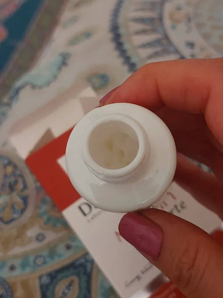 خیلی هم کرم رقیقی بود تا میزدم روی پوست سری شره میکرد یکم ریختم یکی از انگشتام عکسشو گذاشتم ببینید تا یکم دستم کج کردم پخش شد
