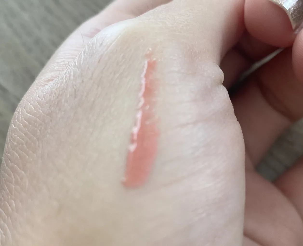 برق لب ؛ این محصول lip glass (برق لب) هست و رژ مایع نیست. رنگدونه ی خیلی کمی داره ، انتظار رنگی که یک رژ لب میده رو نداشته باشین، جلوه ی هلویی ملیح و براق رو لب داره به علاوه ی حالت چسبناک روی لب که شاید بعضیا خوششون نیاد ، رایحه ی ملایمی داره، در کل اونایی که آرایش نود میپسندن به کارشون میاد، عکس تست رنگش روی دستم هم گذاشتم که ببینین