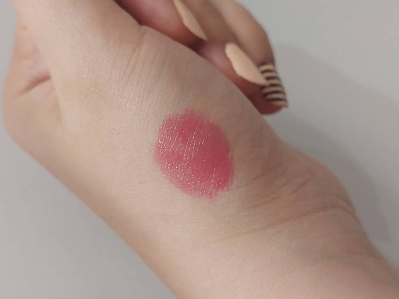 رنگ طبیعی و زیبایی داره. تناژ قرمز سرد. با یک لایه زدن خیلی طبیعیه و تیره و زرشکی در نمیاد. اگه چیزی بخورید رنگش از بین میره اما لب هارو خشک نمیکنه. ارزش خرید رو داره بنظرم. عکسشو میزارم