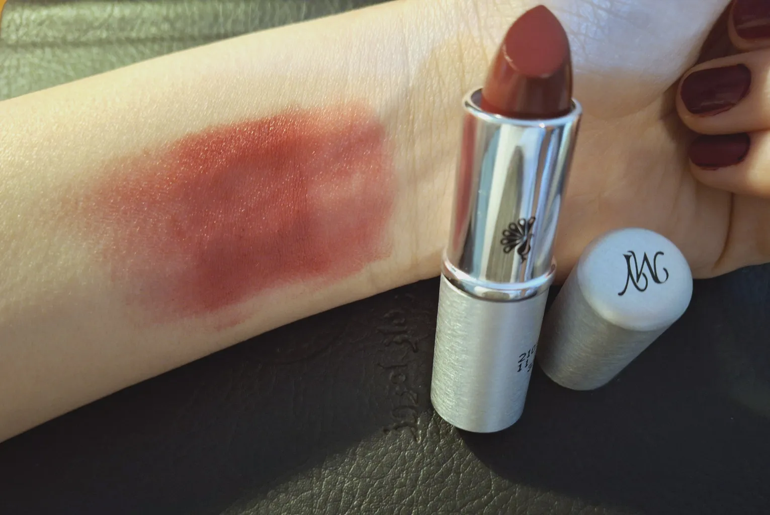 بافت چرب و نرمی داره یه مقدار براقه که بعد از گذشت ۱۰ دقیقه یه مقدار مات تر میشه من پوستم گندمیه رنگشو دوست داشتم به پوستم اومد قیمتش یه مقدار بالاس اما چون یه رژ سالم میخواستم تصمیم گرفتم اینبار از محصولات شون استفاده کنم توی تصویر یه مقدار رنگش تیره تره ولی روی لب یه صورتی خوشرنگه