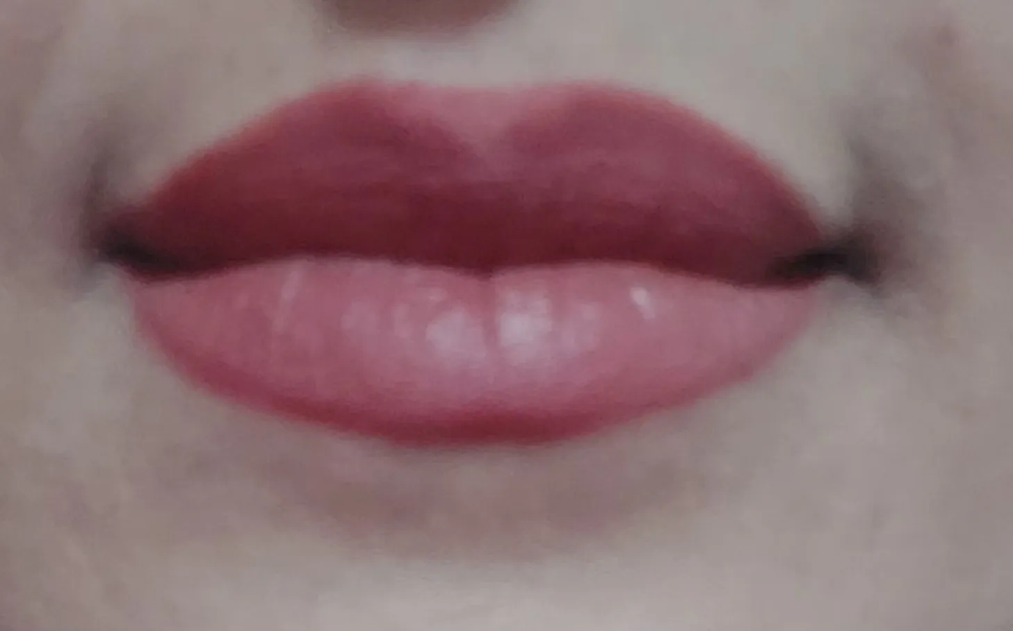 اما از رژ بگم اندازه و رنگش که تو تصویر معلومه تو نور لامپ. رنگش به آجری میزنه . تقریبا یکم شارپتر شده رنگش به خاطر گوشی