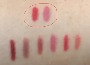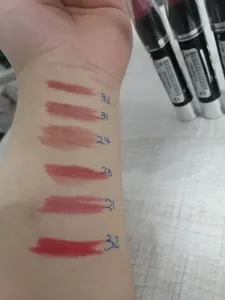 من 4 ساله رژم رنگ گوشتیه و این رنگ اصلا گوشتی نیس. یا شایدم رنگ گوشتی نداشتن ی چیز دیگه فرستادن !!! این رنگ دقیقا بنفش کمرنگ هست ، توی عکس رنگ بالایی که 31 نوشتم رنگ رژه که وقتی روی لب میاد دقیقا صورتی مایل به بنفشه. رنگ گوشتی هم که زیریشه رژ قبلیمه. تازه درب محصول هم از 2 جا شکسته.حوصله تعویض هم نداشتم