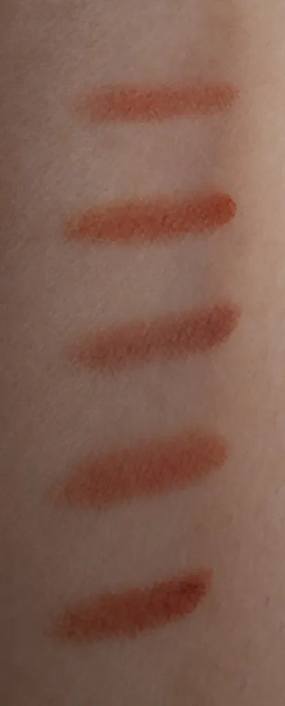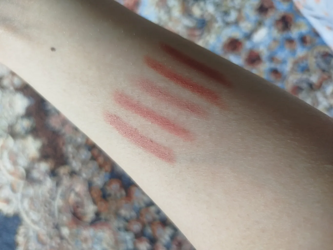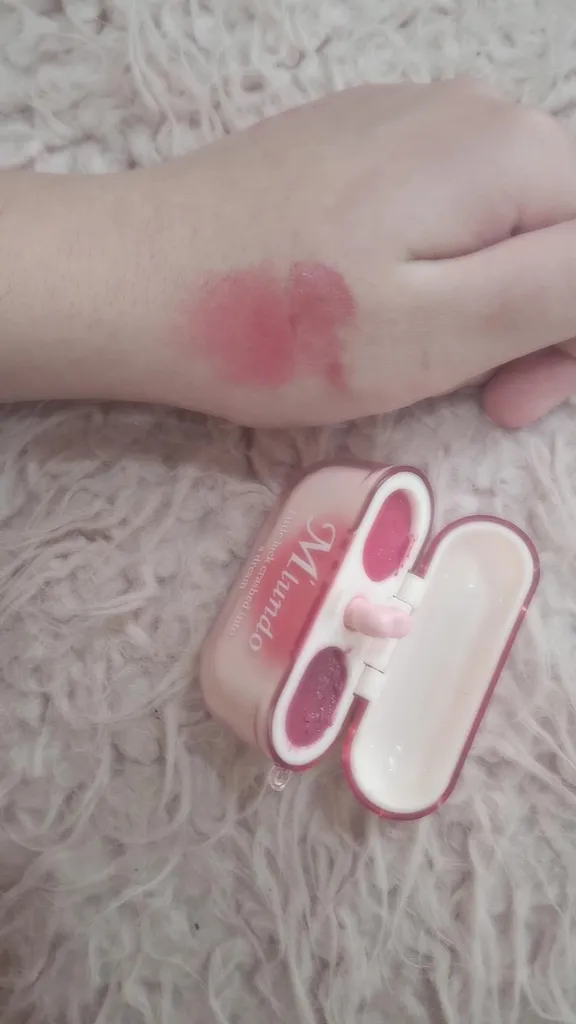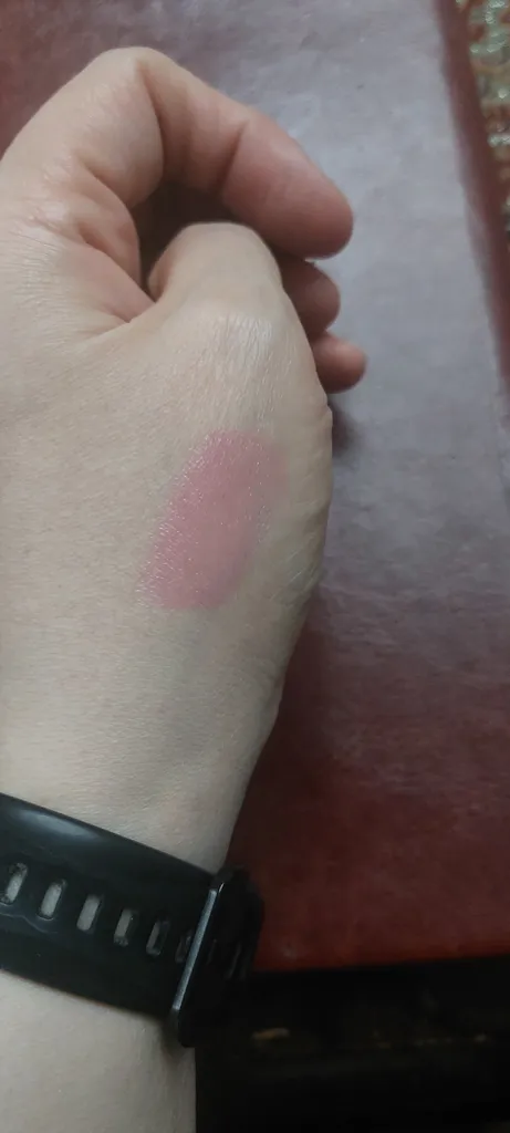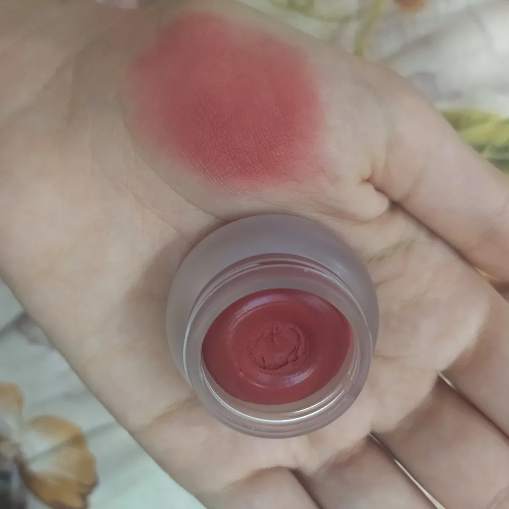 خیلیییی خوب بود برای روی گونه راحت فید میشد و خیلی مات و خوشگل بود و روی لب هم خیلی مخملی و مات بود اما یکمی از تصویر روشن تره خیلی کم عکس تستشو گذاشتم